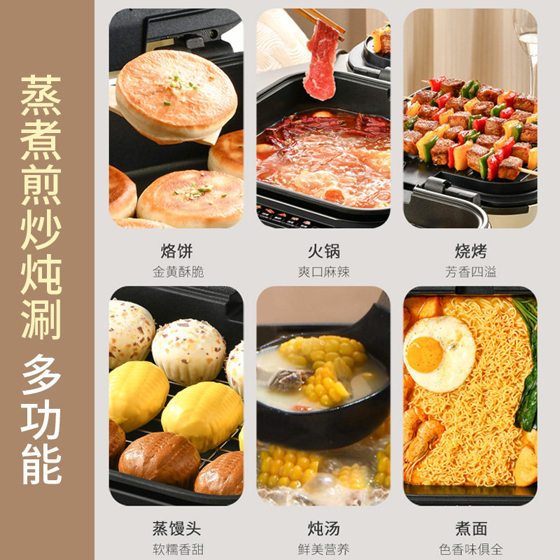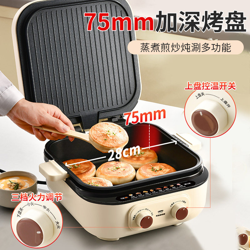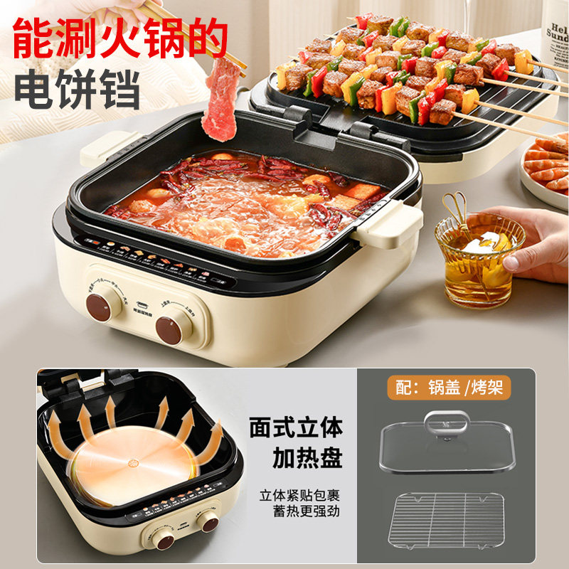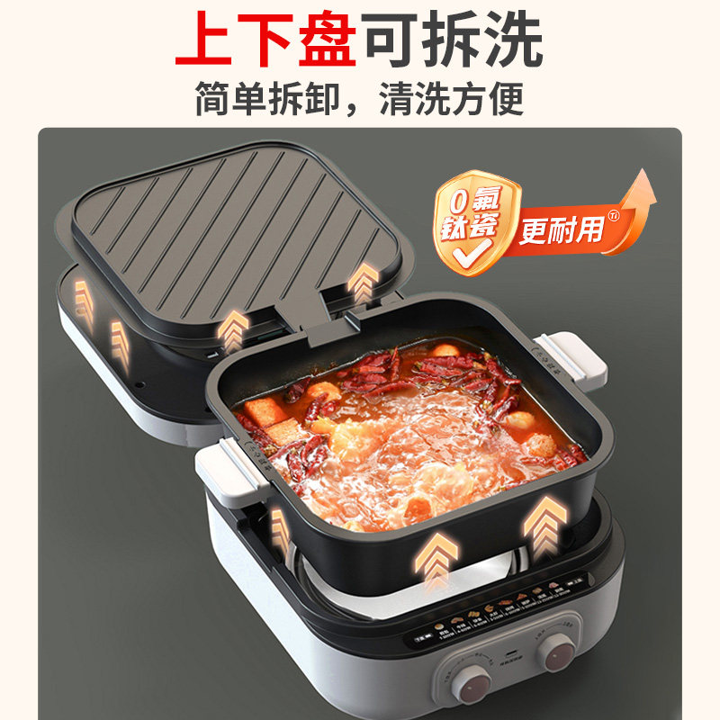 利仁电饼铛双面加热家用加大加深可拆洗多功能电煎锅涮烤一体火锅