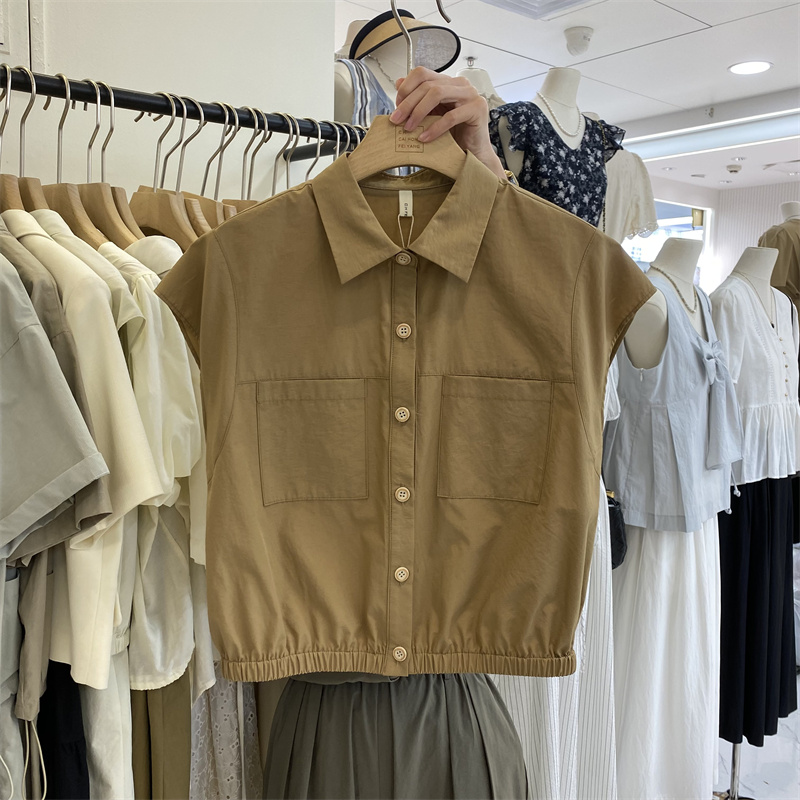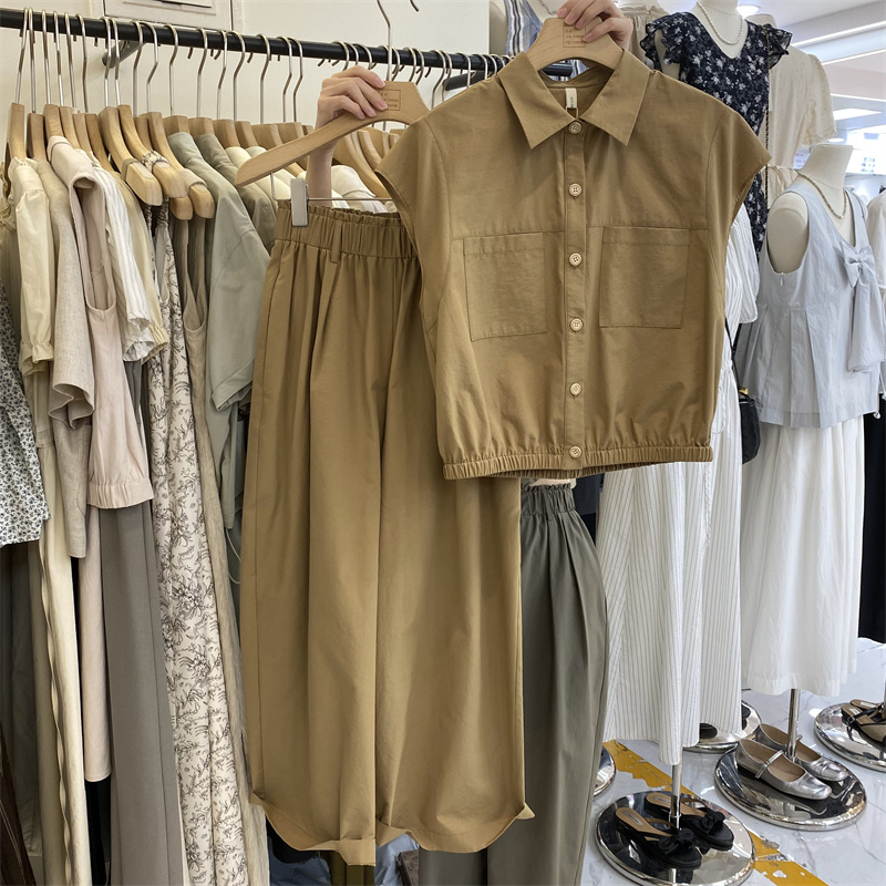 2023夏季新款韩版宽松显瘦收腰无袖衬衫+高腰工装休闲裤两件套潮