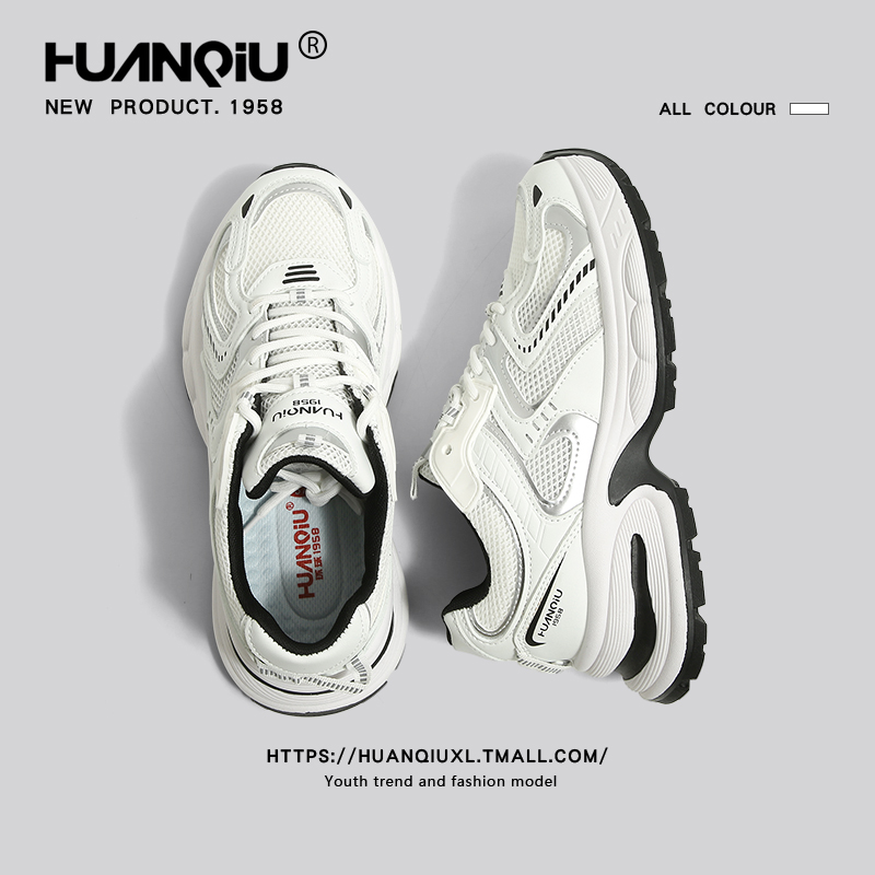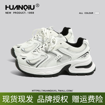 环球白色厚底老爹鞋女2025夏季新款超火百搭休闲透气网面运动鞋子