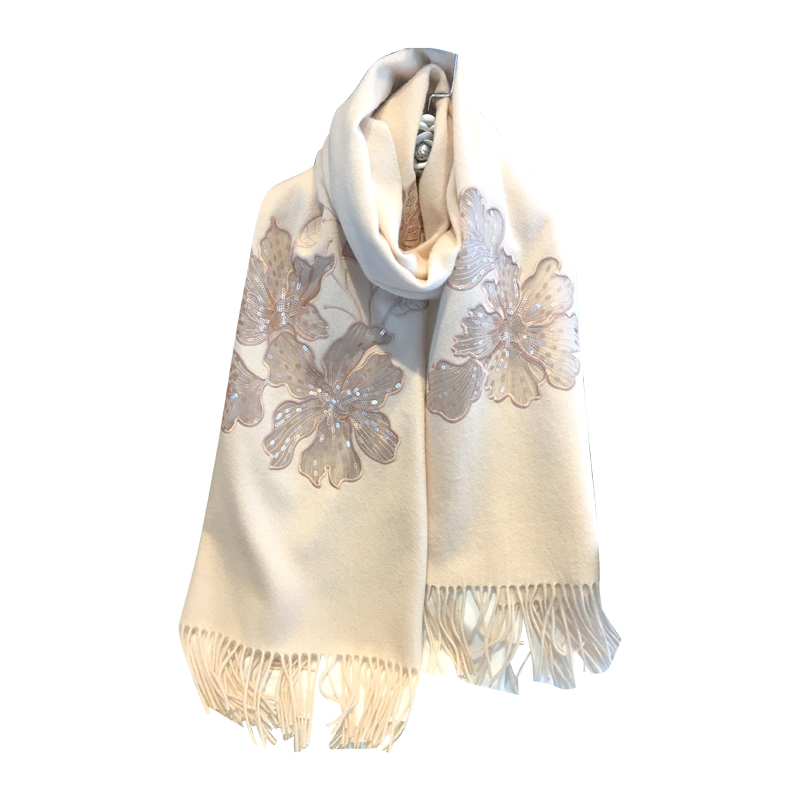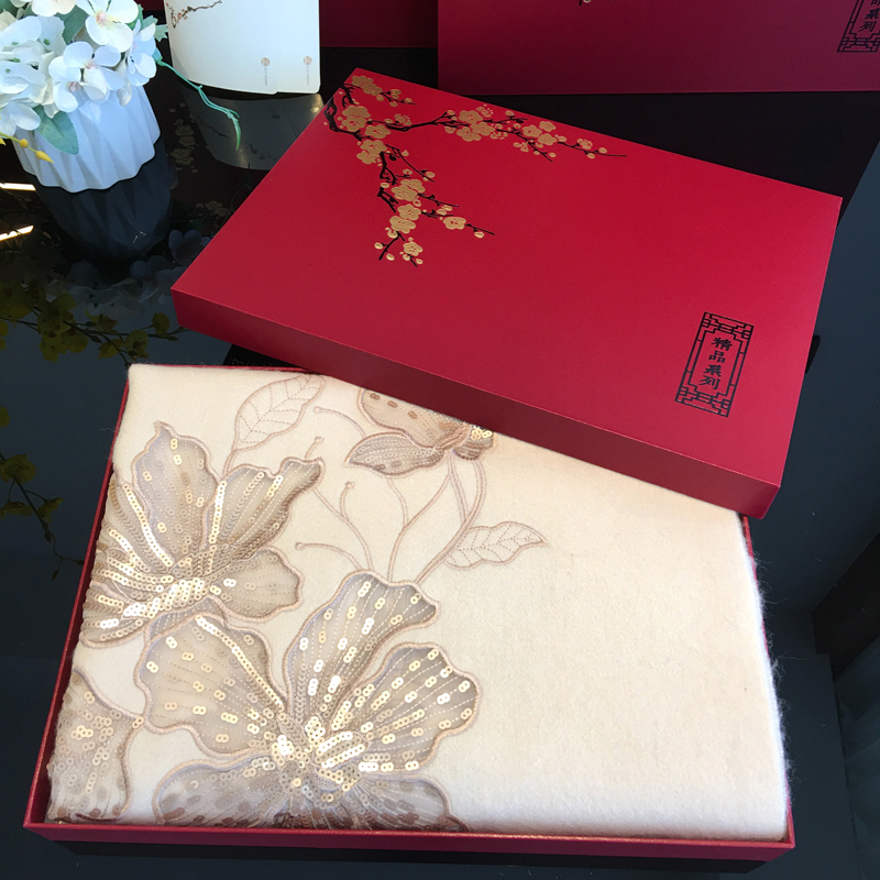 秋冬中国风高端送礼绣花羊毛围巾