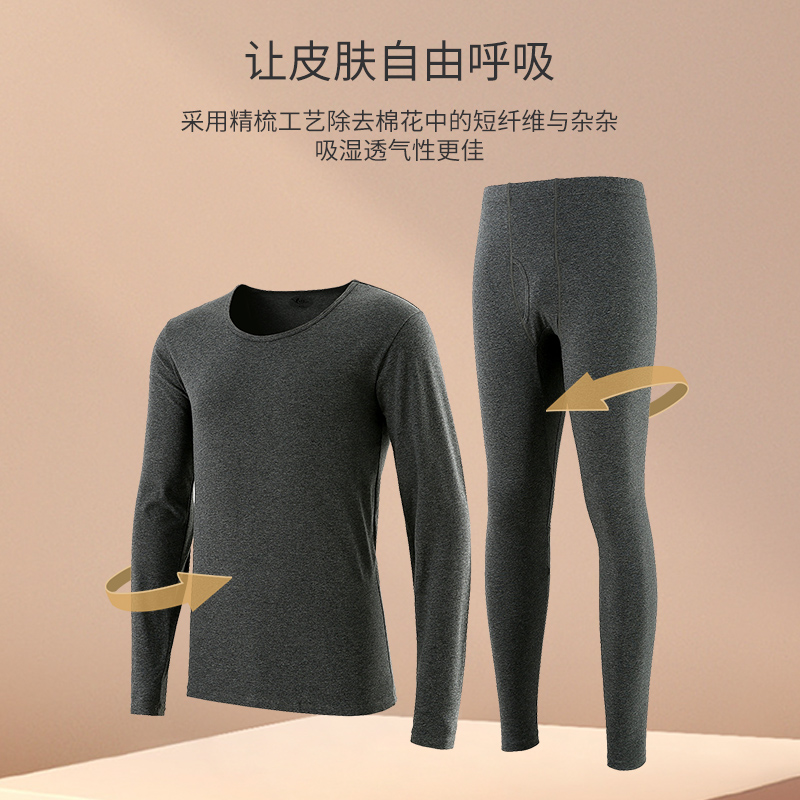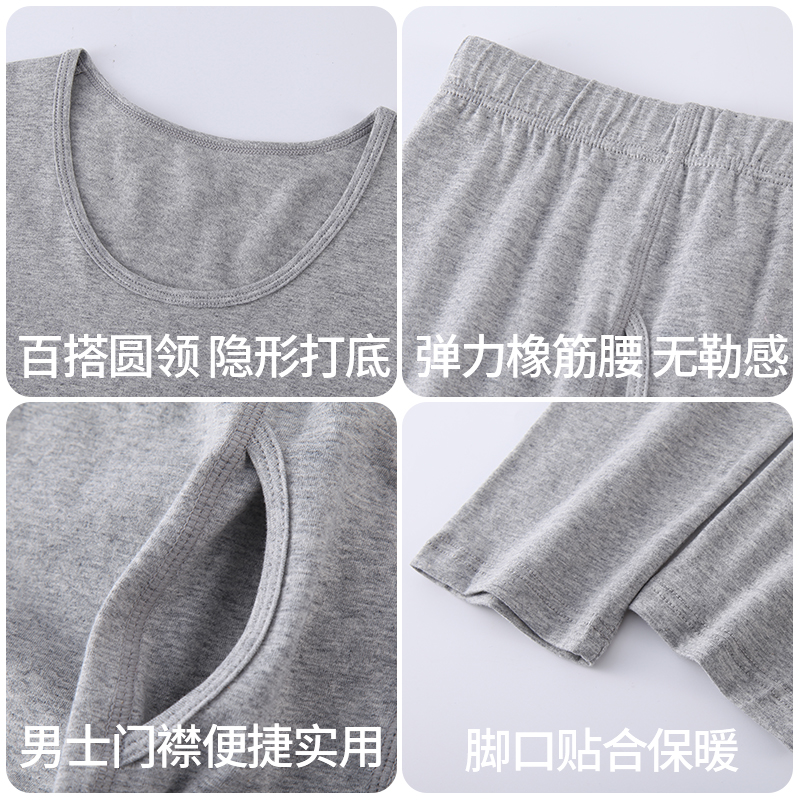 男士纯棉秋衣秋裤套装圆领保暖内衣薄款打底棉毛衫线衣线裤大码