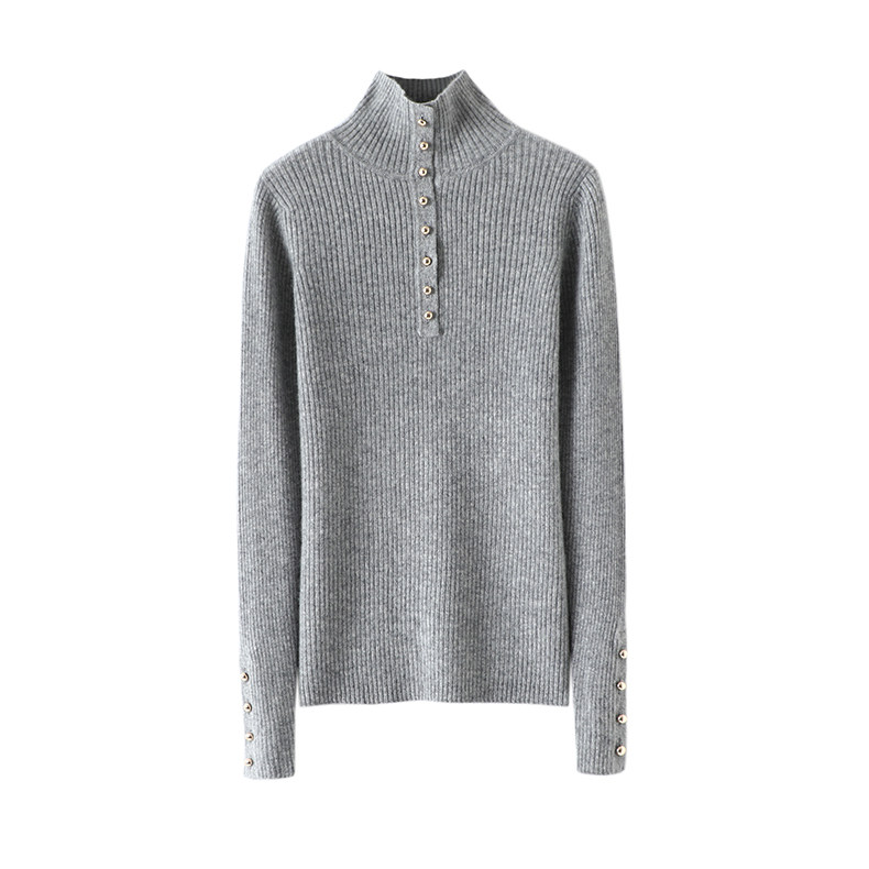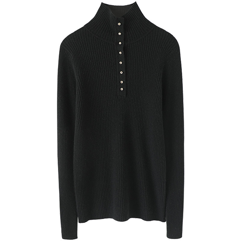 稳稳的时髦感!金扣高领弹力修身羊绒衫女纯羊绒毛衣针织打底衫冬