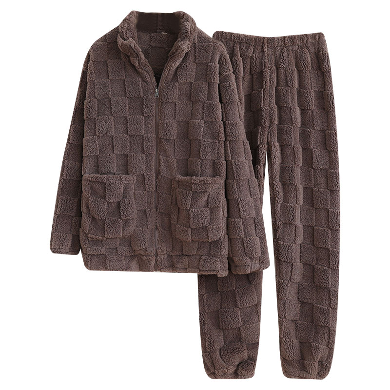 男士珊瑚绒拉链立领家居服套装