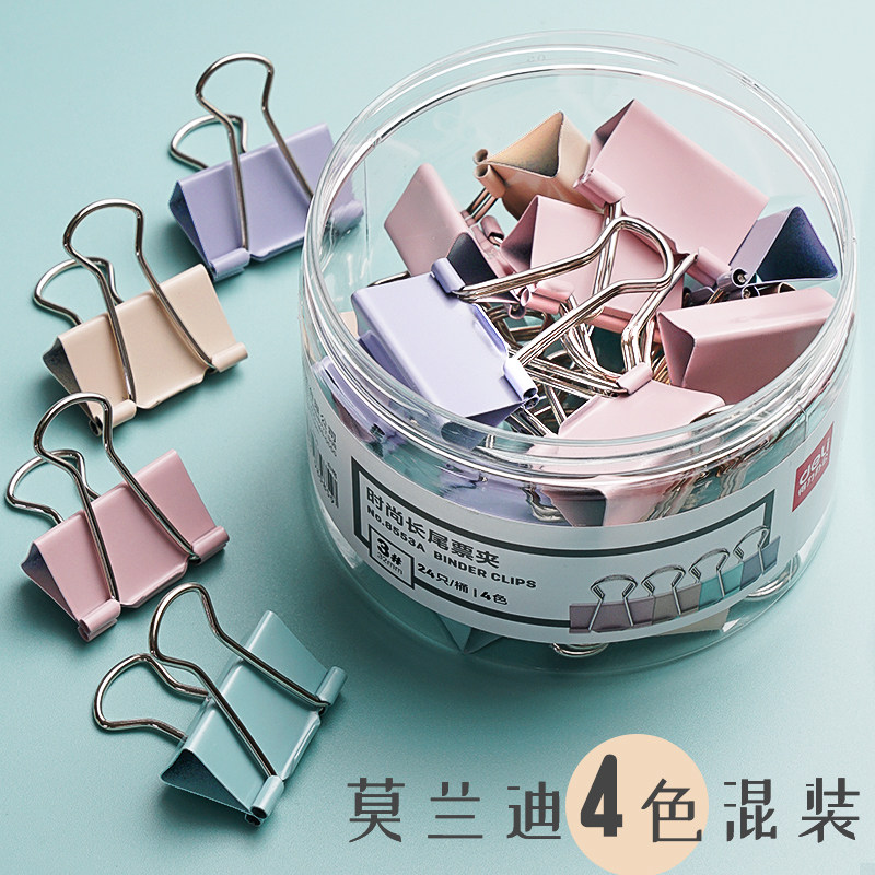 【时尚长尾夹】得力旗舰店长尾夹燕尾夹办公用品彩色金属票据夹小号文具大号资料夹子分类长尾票夹收纳食品