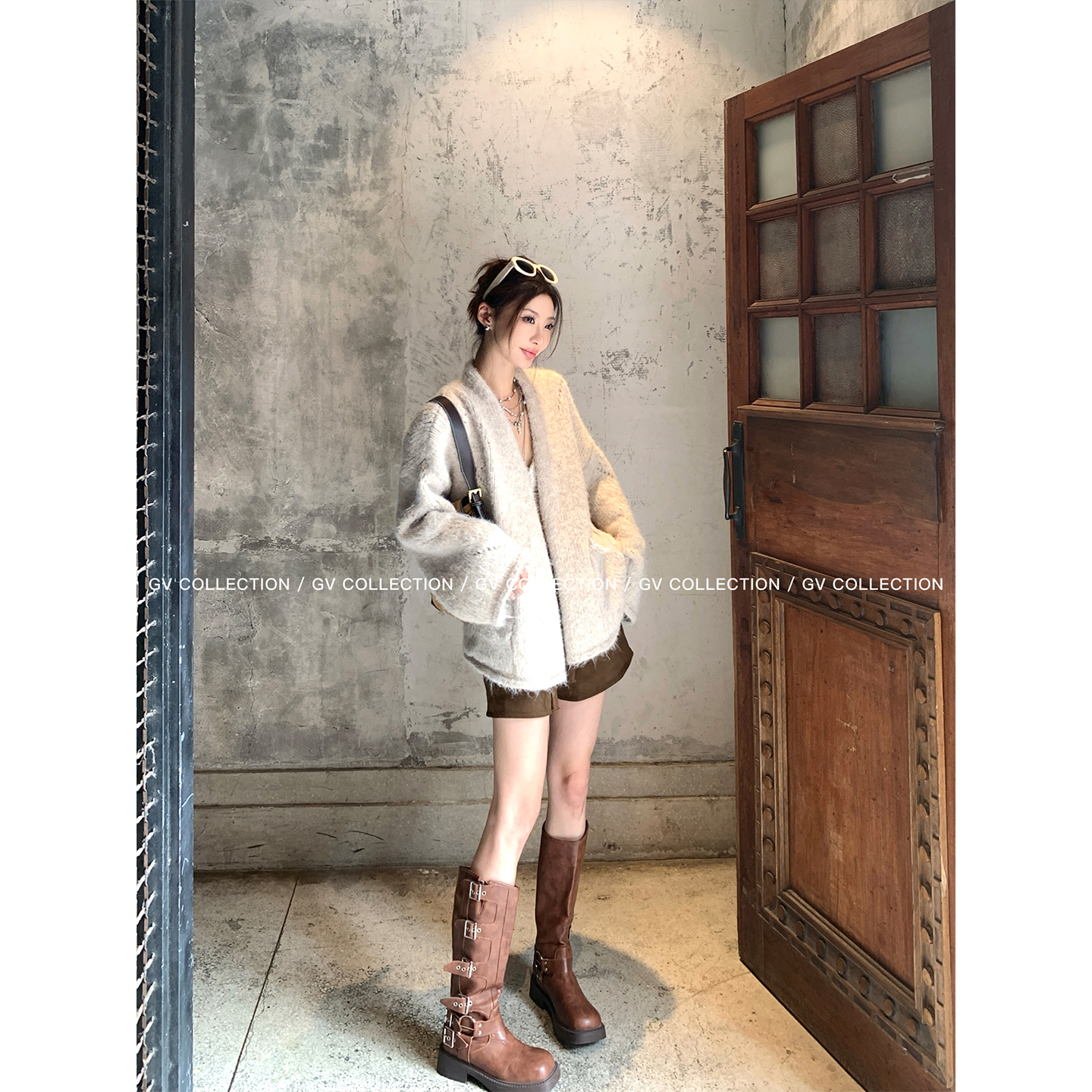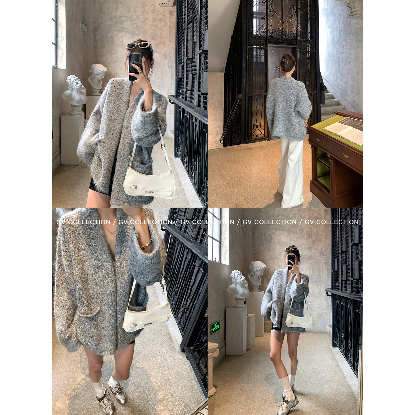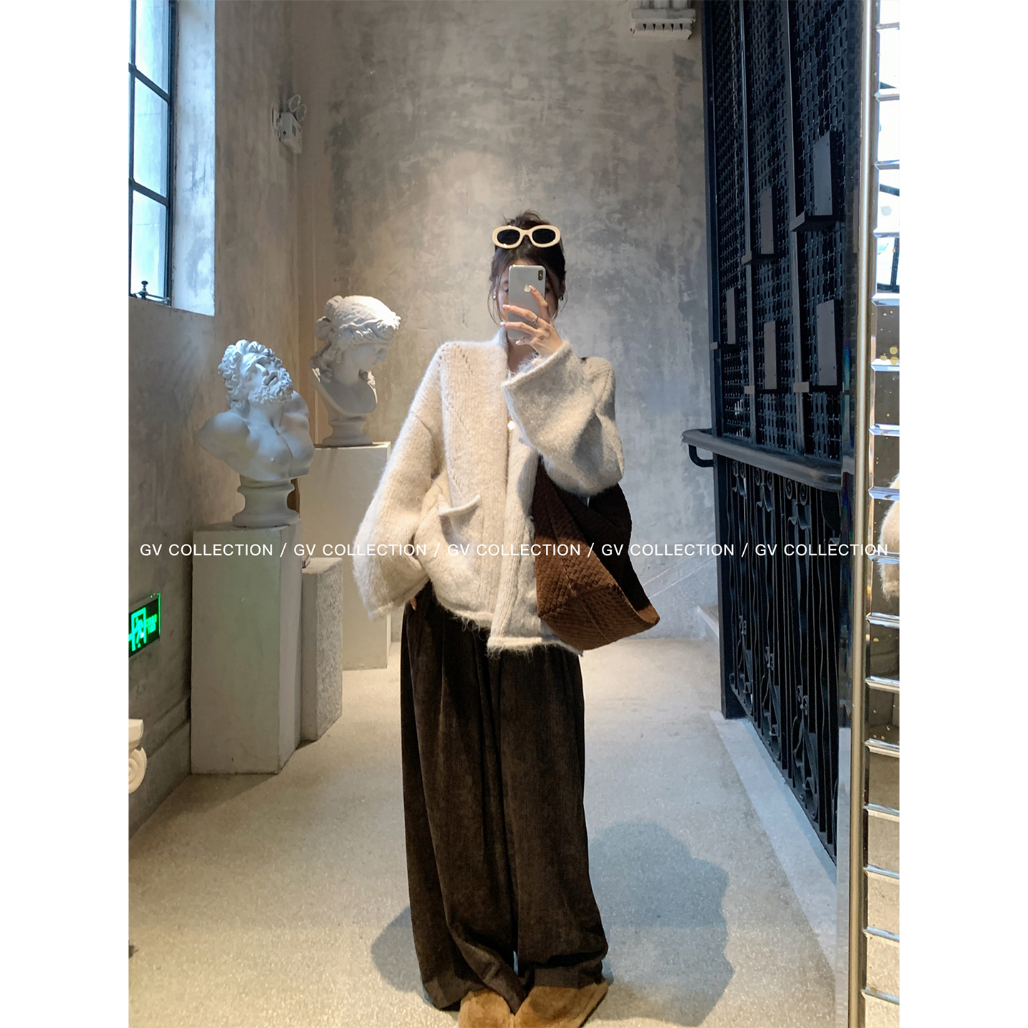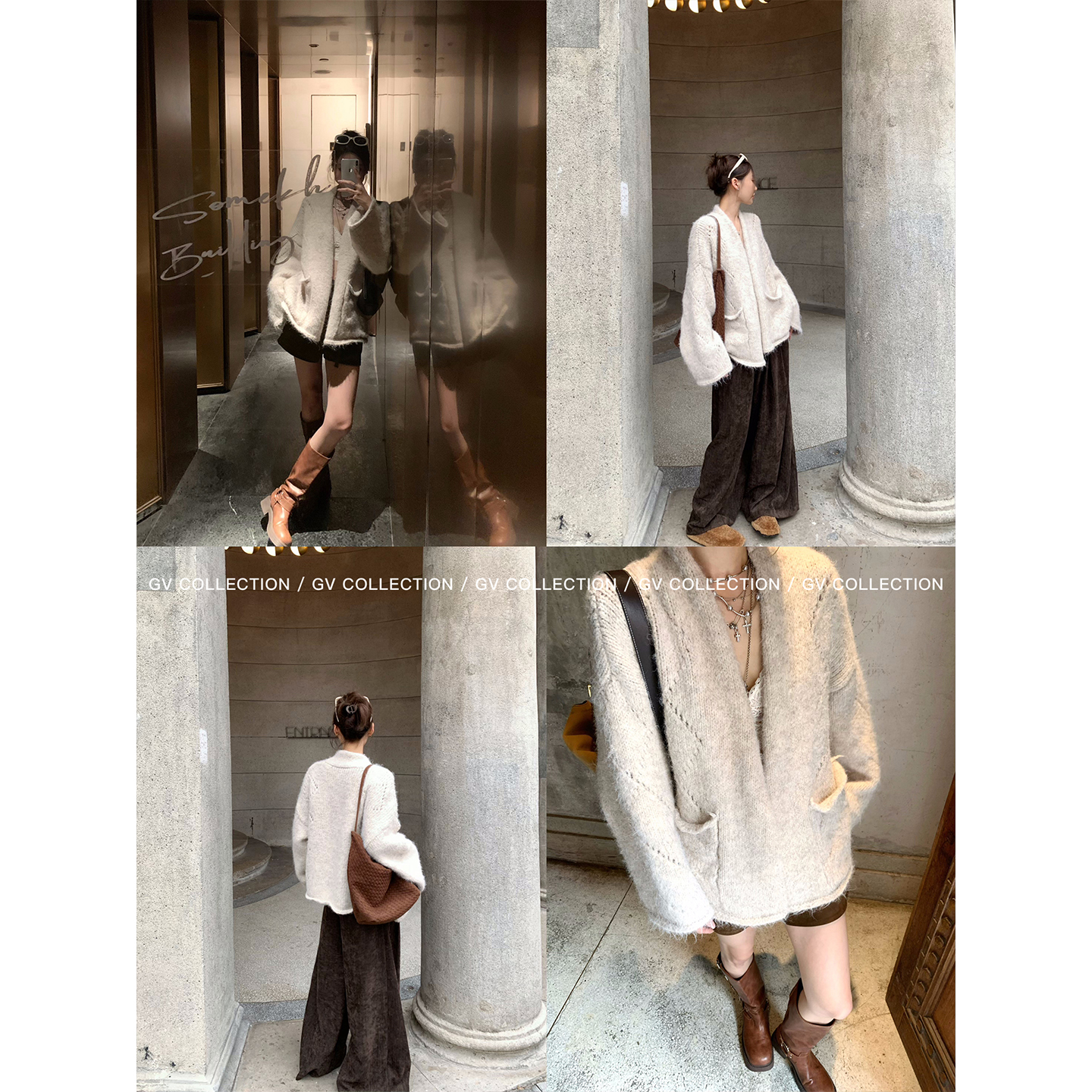 GV大白哥 慵懒淡人 绒感羊毛大口袋廓形针织披肩开衫秋季新款毛衣