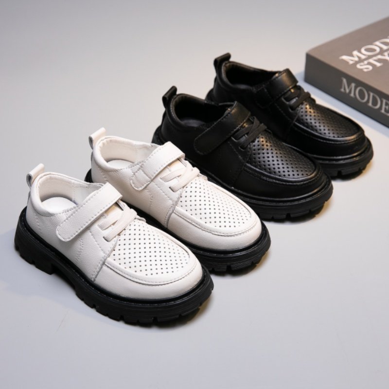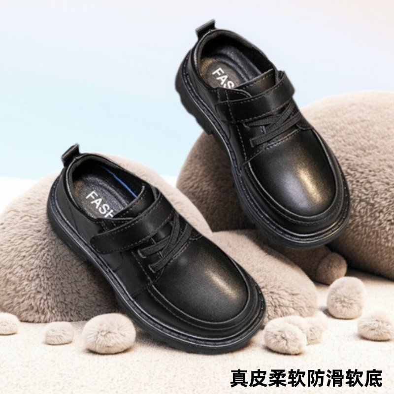男童皮鞋真皮夏季凉鞋镂空透气女童黑色学生英伦演出鞋软底儿童鞋