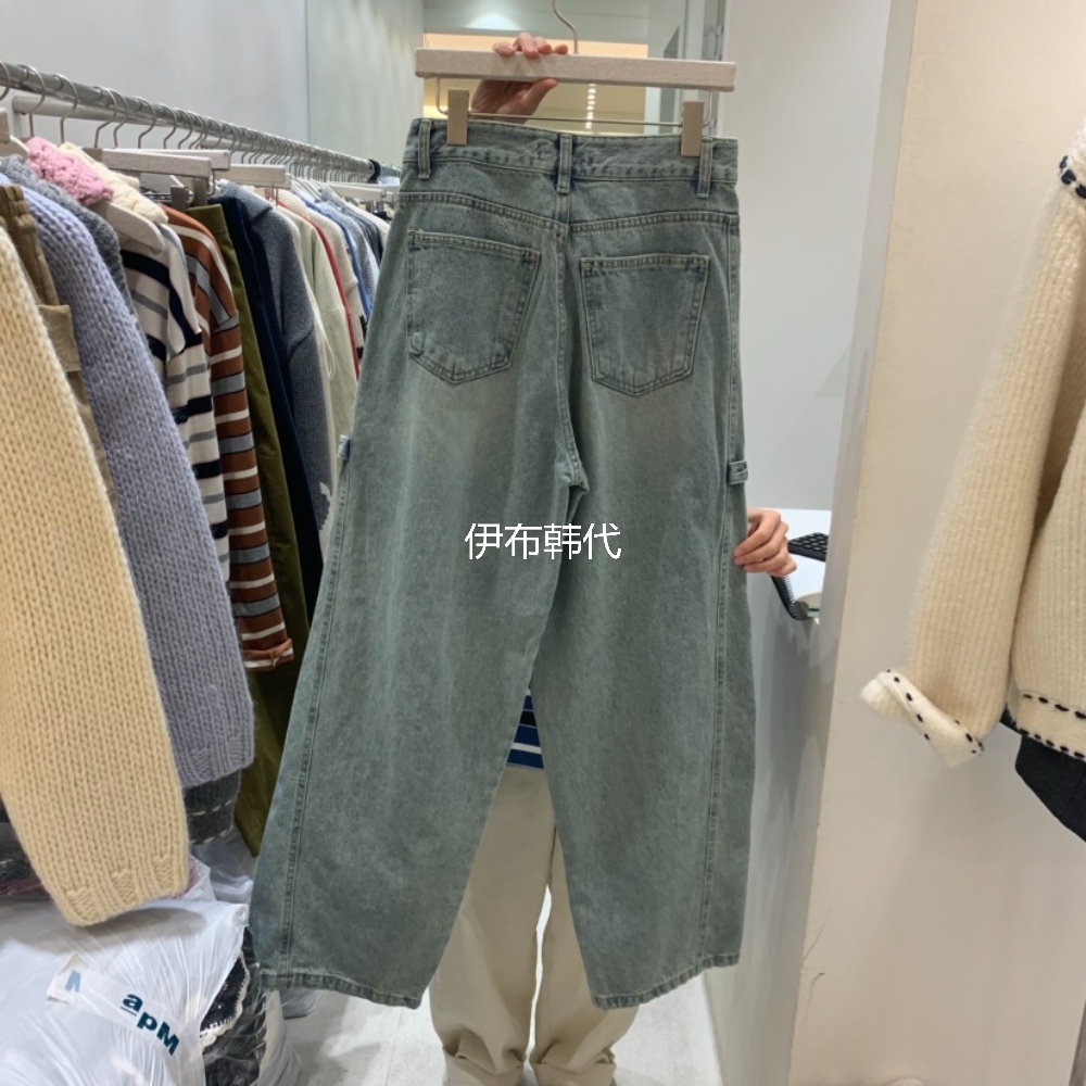 ASOME韩国东大门正品代购25秋冬 磨白做旧浅色直筒裤宽松牛仔裤