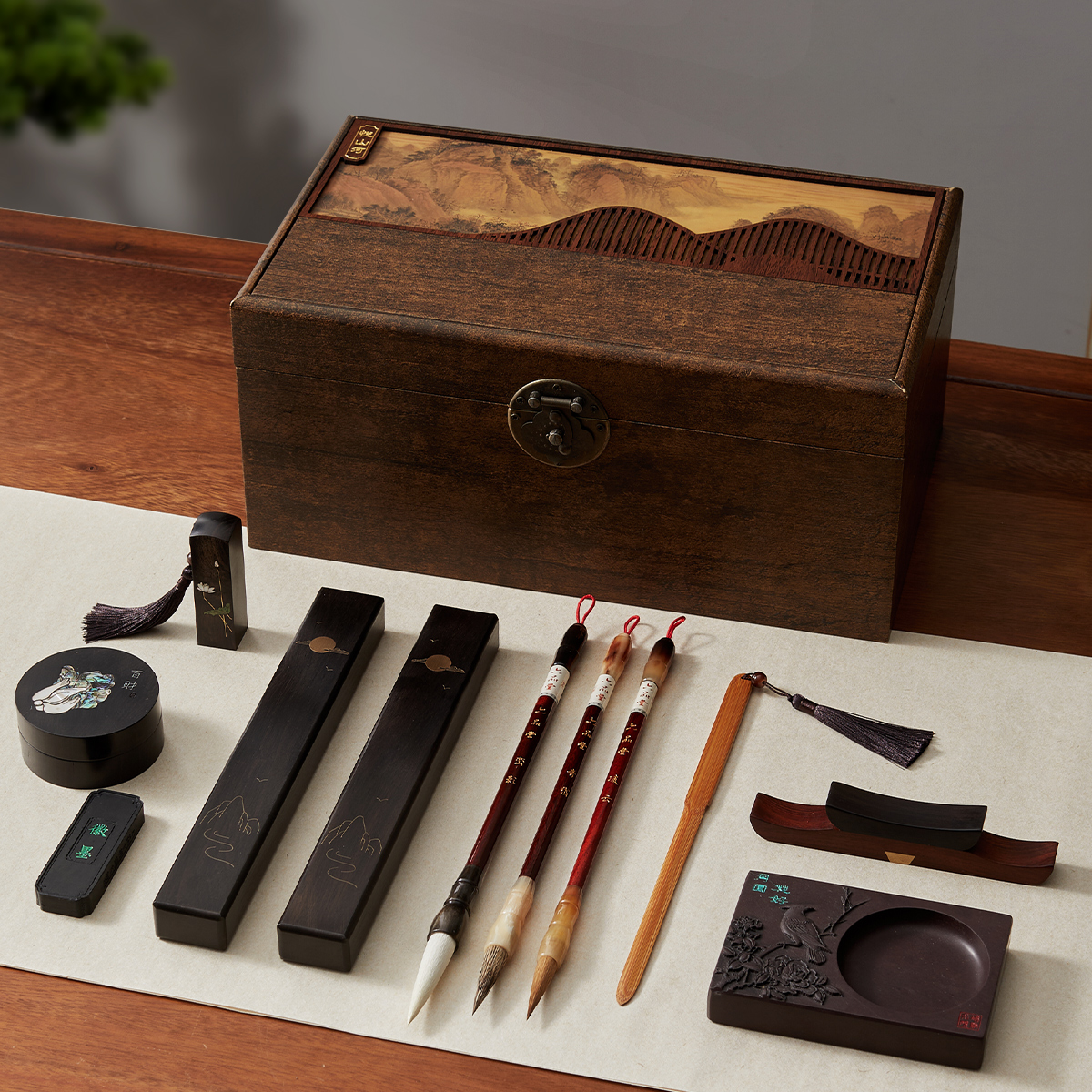 六品堂 山河颂 文房四宝套装礼盒送礼收藏笔墨纸砚专业级徽墨非遗端砚砚台高档精品礼物镇纸书法练习专用摆件