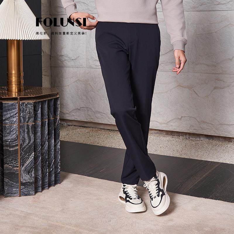 佛伦斯FOLUNSI男装春秋男士商务休闲裤男2024高级男士直筒裤羊毛