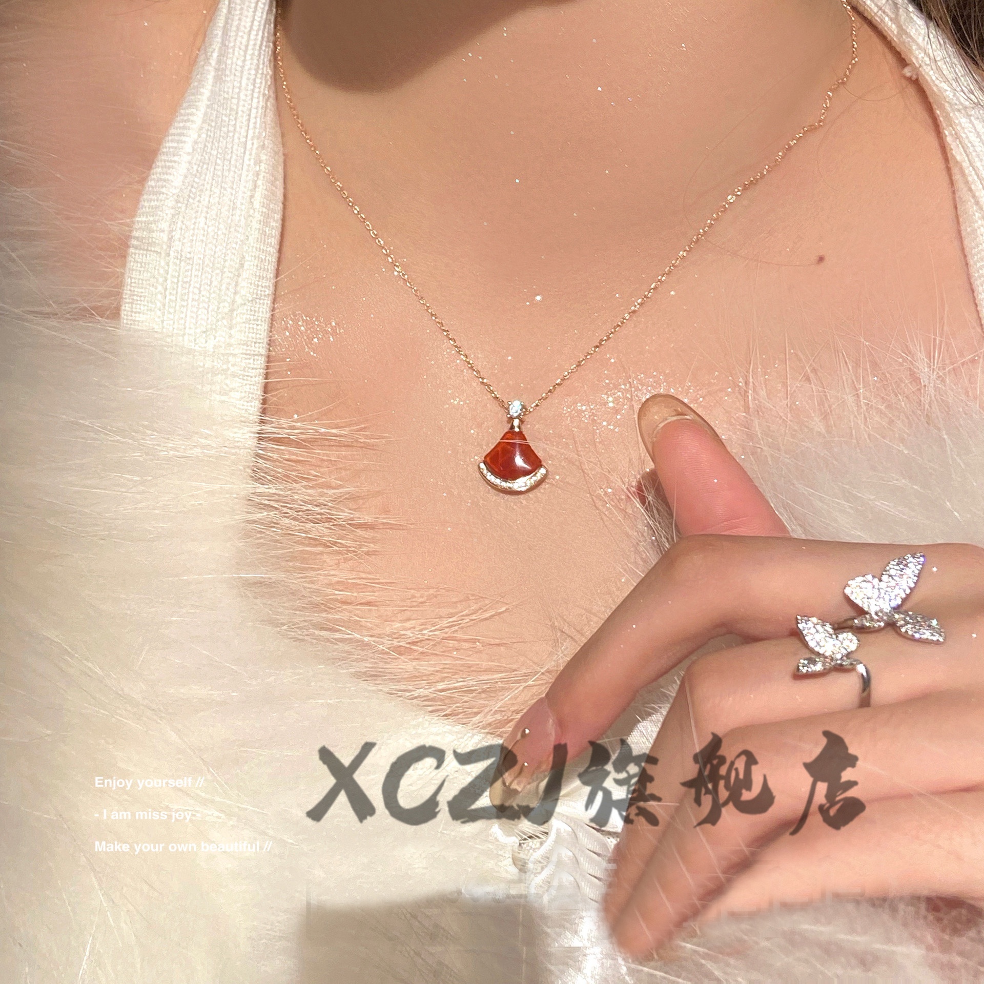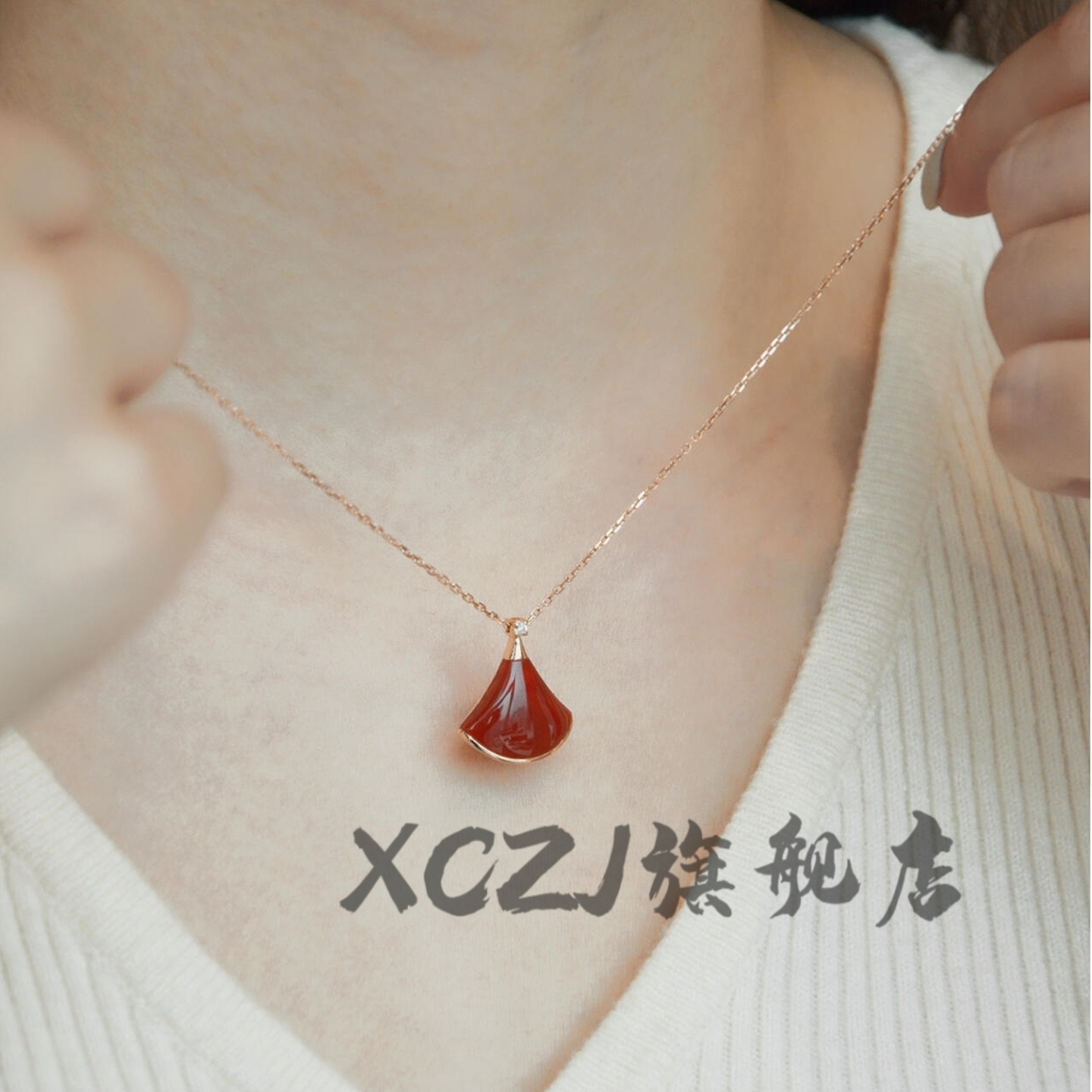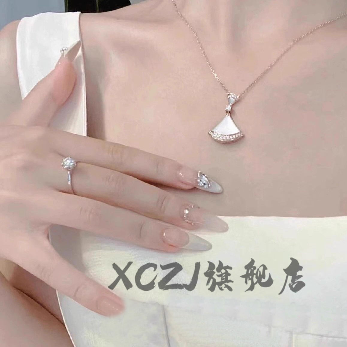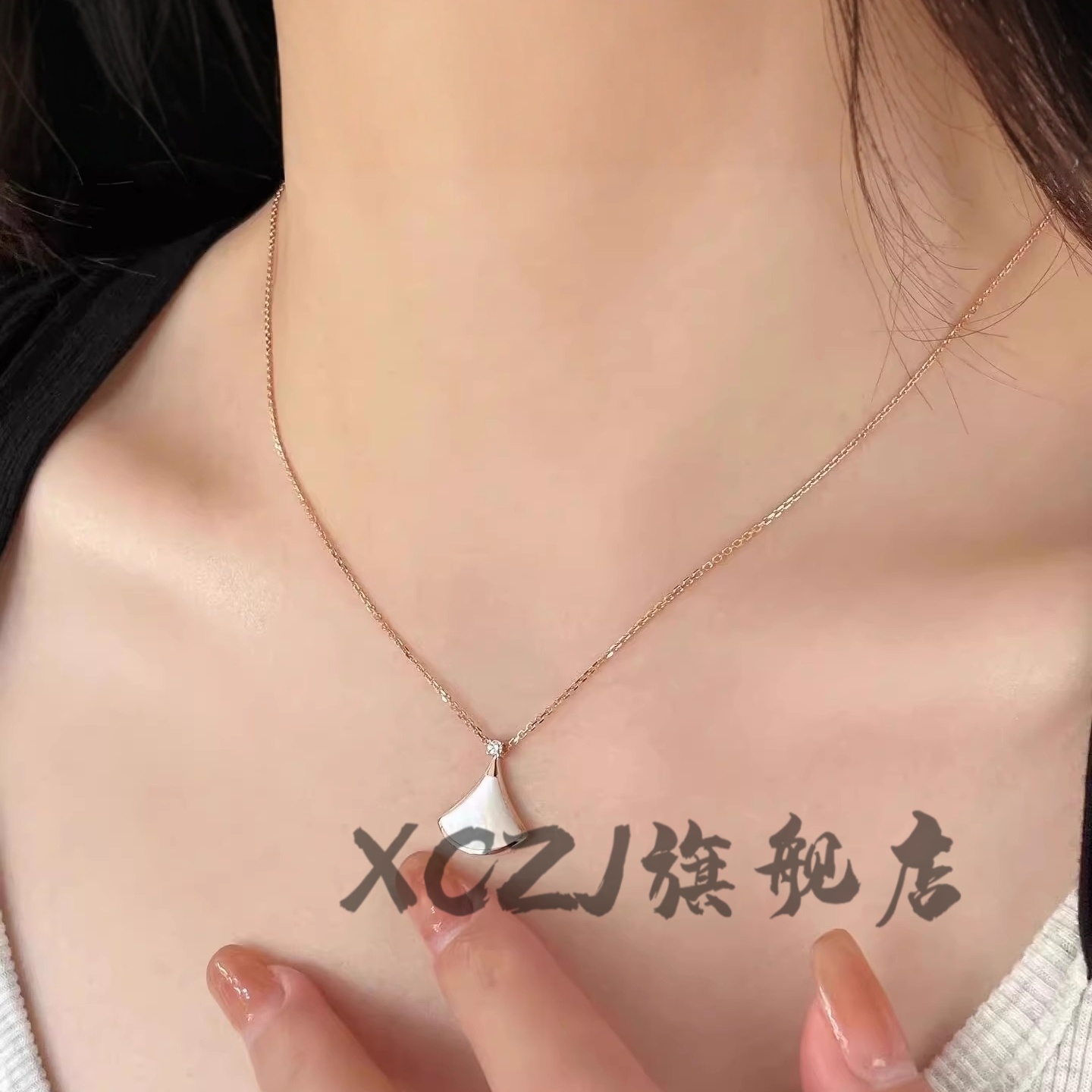XCZJ白贝母小扇子项链18K金大号小裙子锁骨链七夕情人节日礼物女