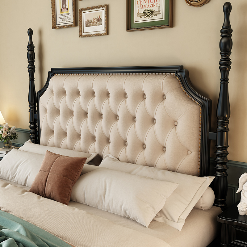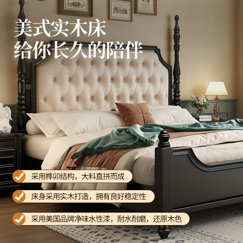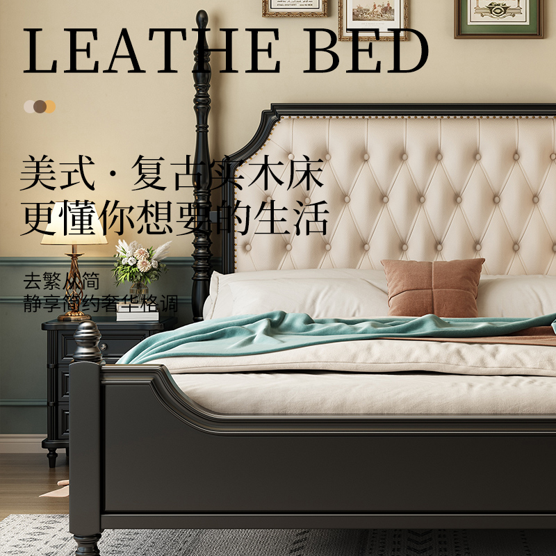 法式实木复古床美式轻奢双人床欧式乡村简约主卧婚床公主真皮床