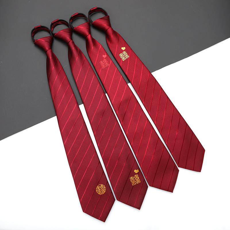新郎结婚喜字拉链式男女红色正装面试上班职业装韩版窄免打领带