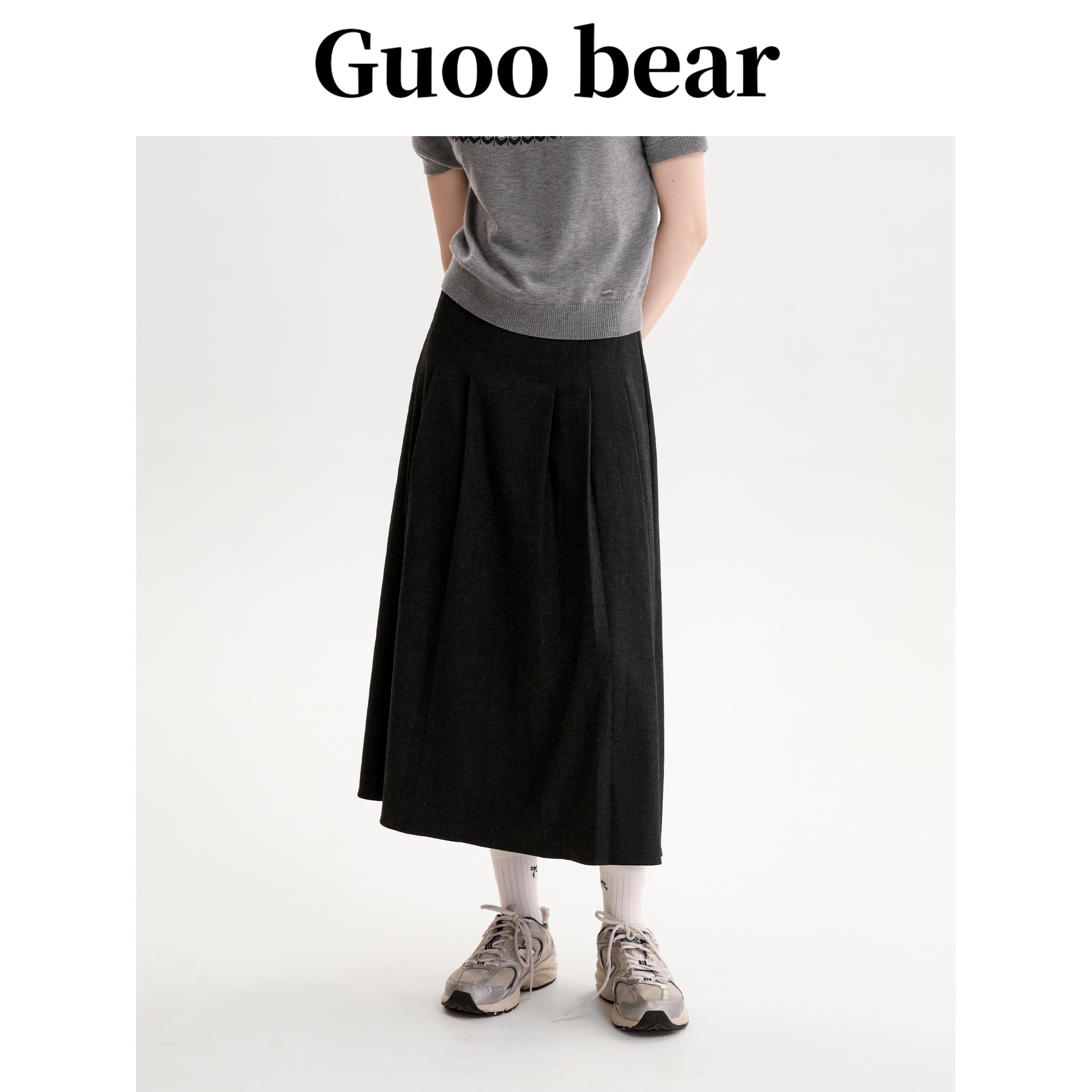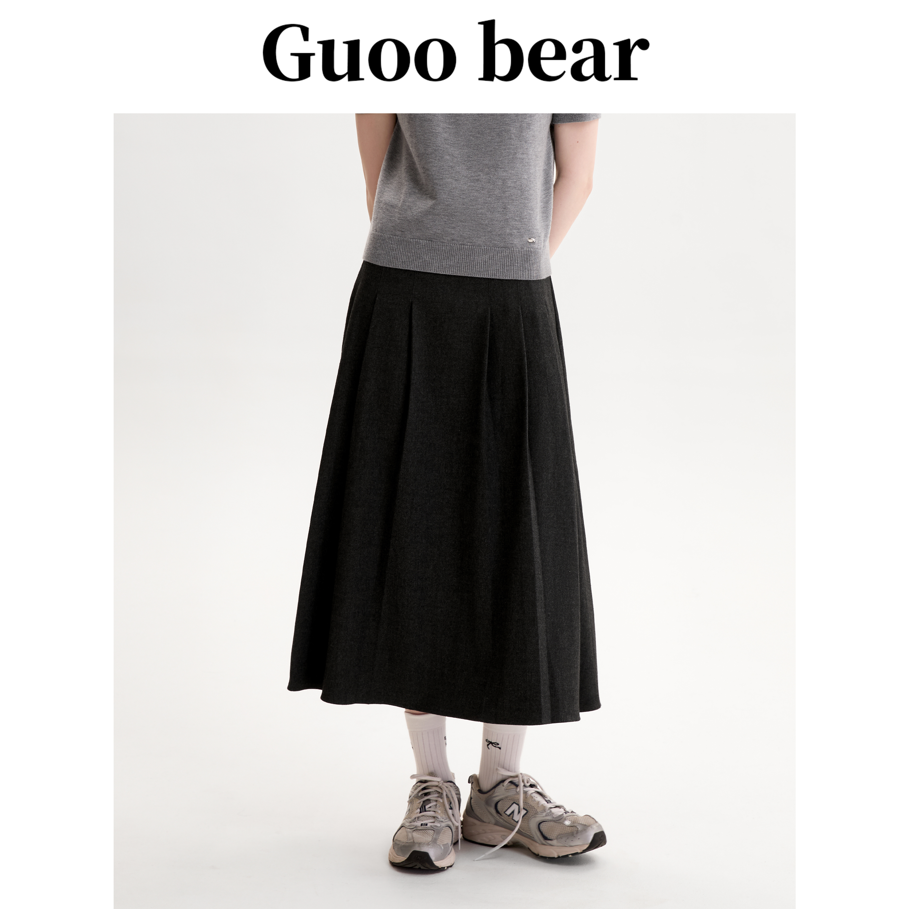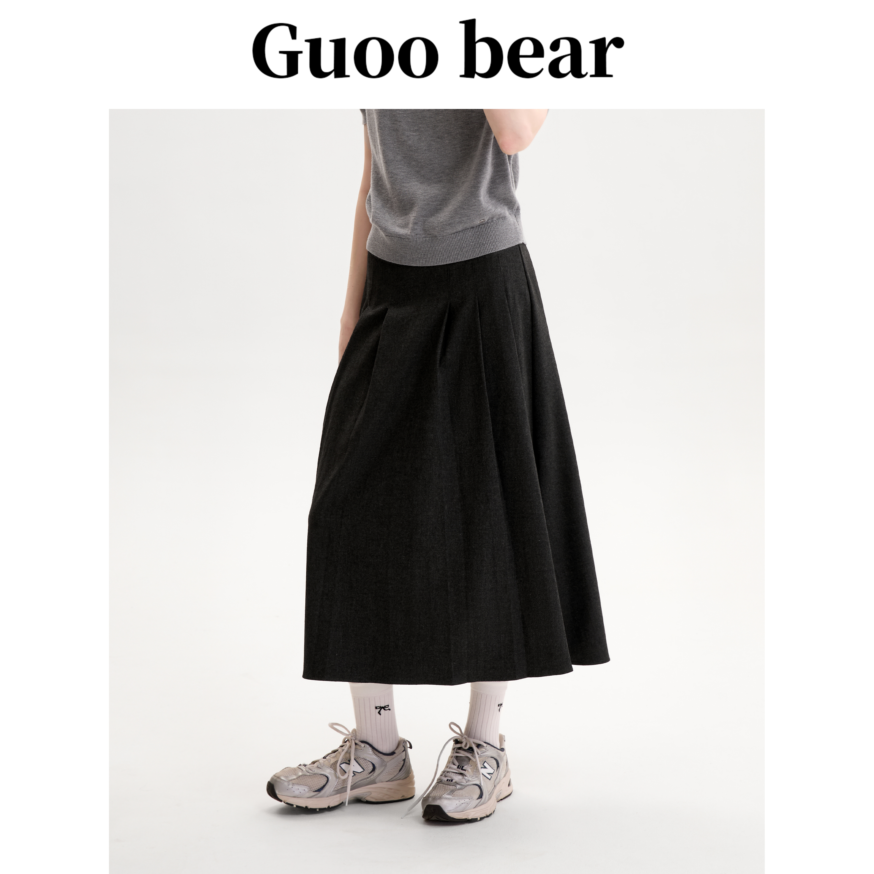 GUOOBEAR古家小熊女装半身裙2025年新款气质通勤中长款百褶裙女
