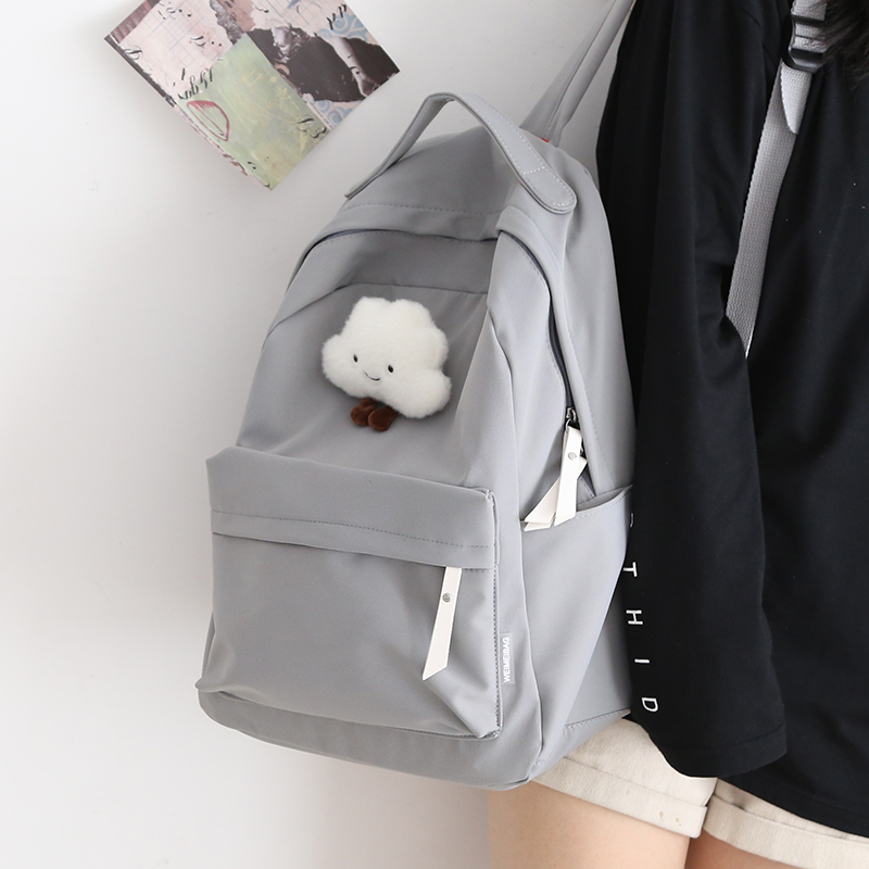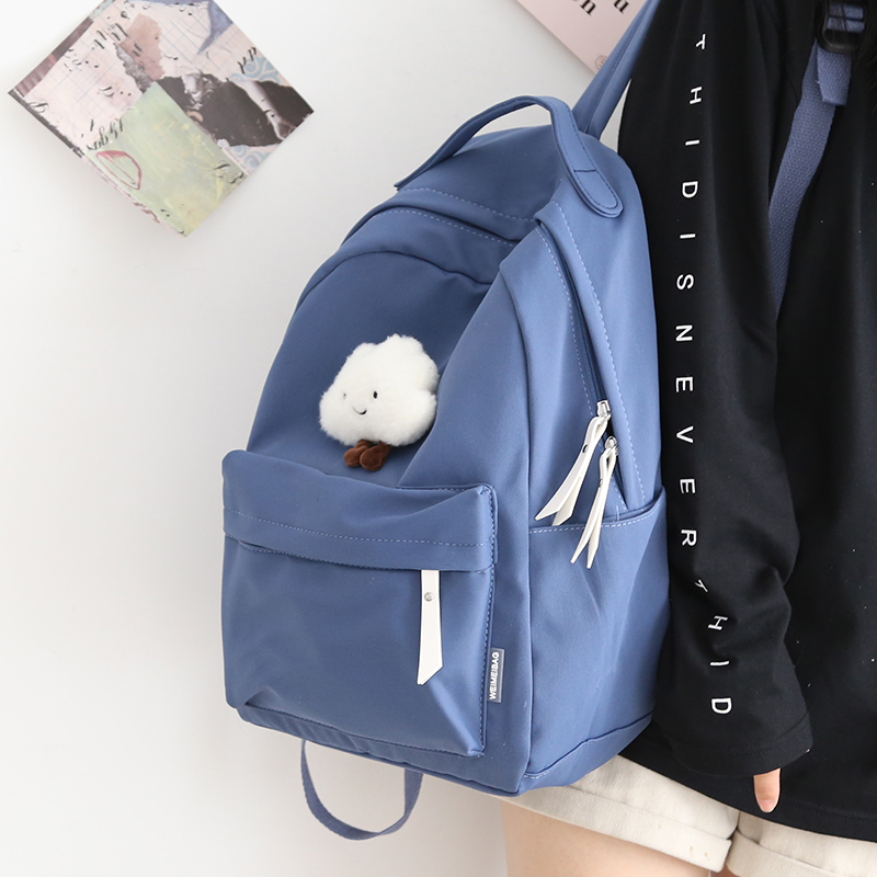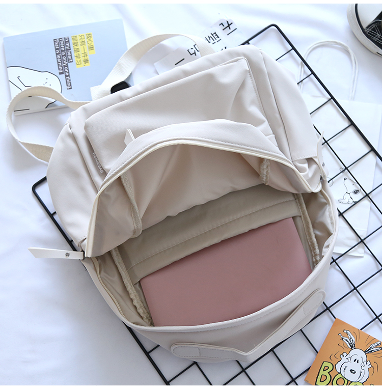 NR森系纯色百搭双肩包女书包中学生初中生韩版背包女双肩大学生