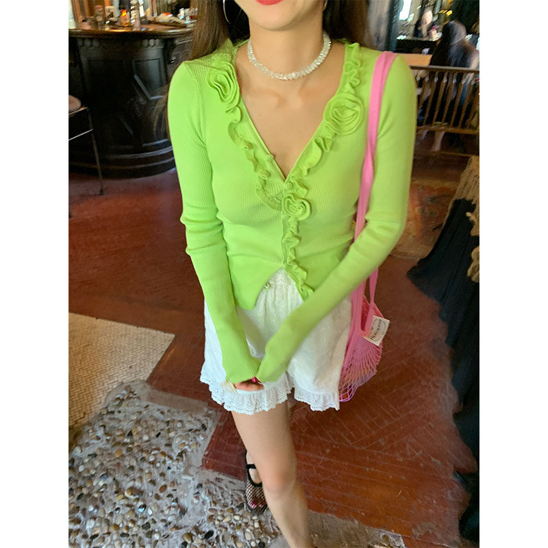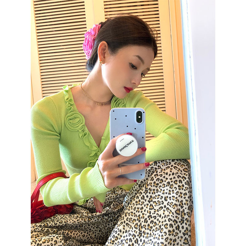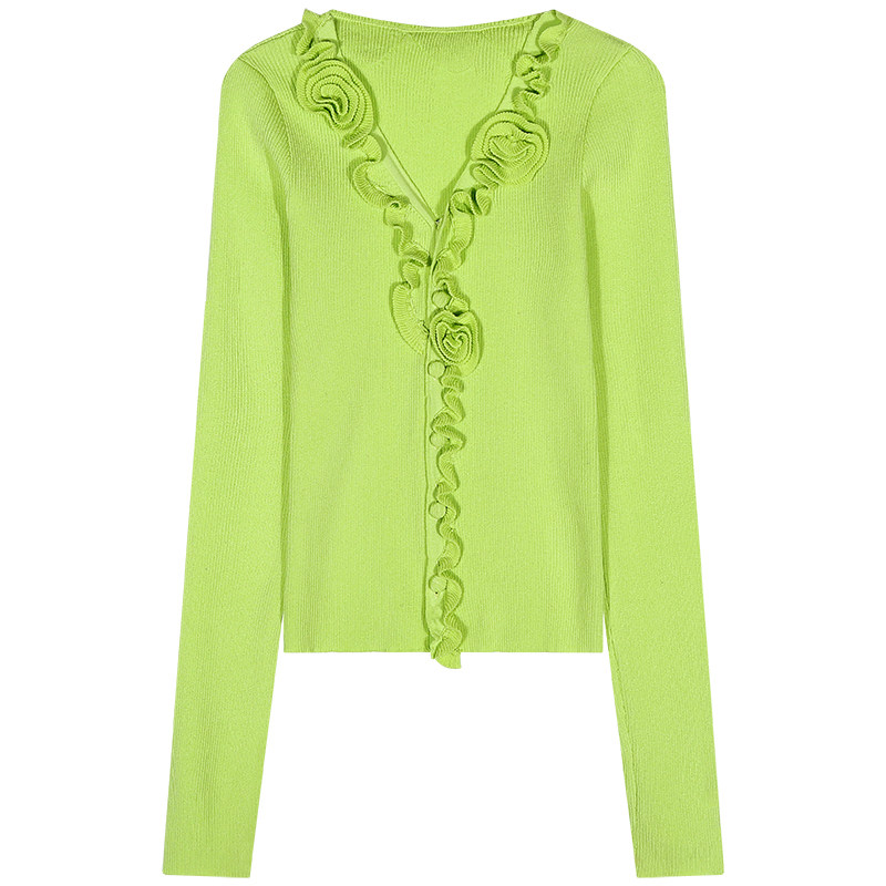 落落狷介冰丝针织衫女开衫外搭2025夏季长袖新款荧光绿小个子上衣