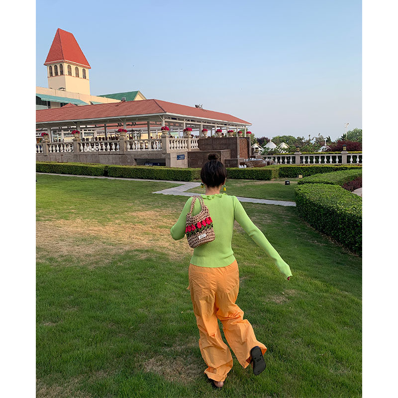 落落狷介荧光绿冰丝针织衫女