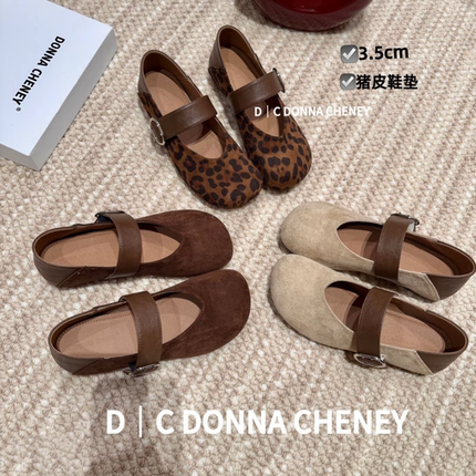 豹纹羊京绒玛丽珍鞋女2025年秋季新款复古韩版内增高软底浅口单鞋