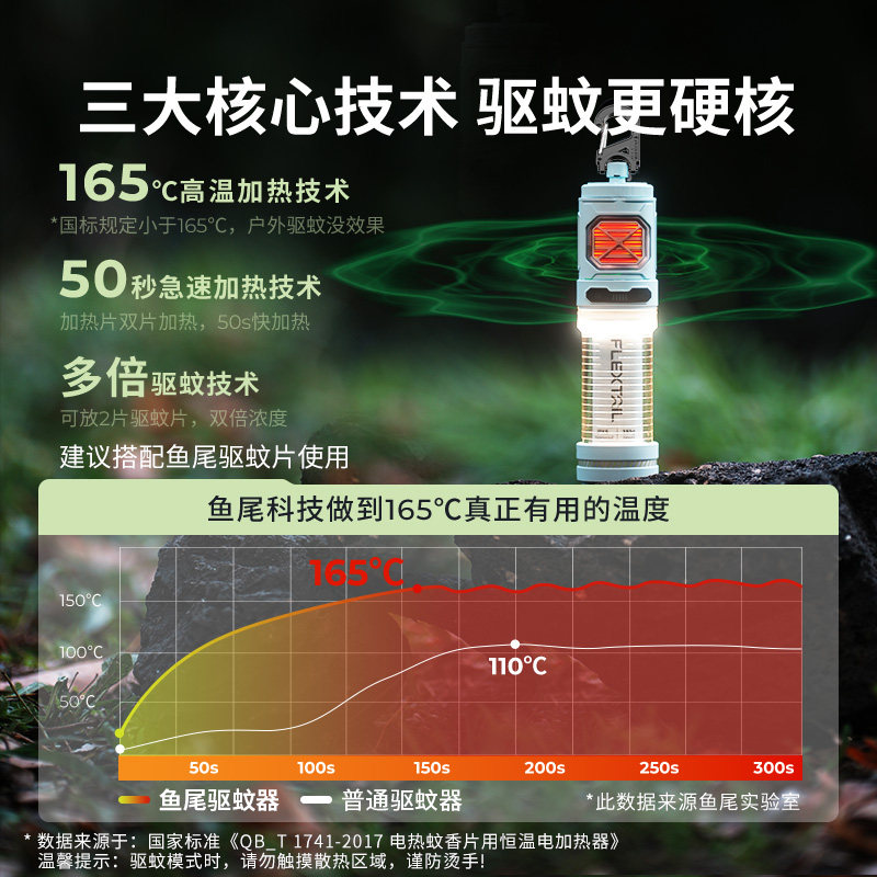 FLEXTAILGEAR鱼尾户外驱蚊神器便携电蚊香露营灭蚊灯钓鱼防蚊用品