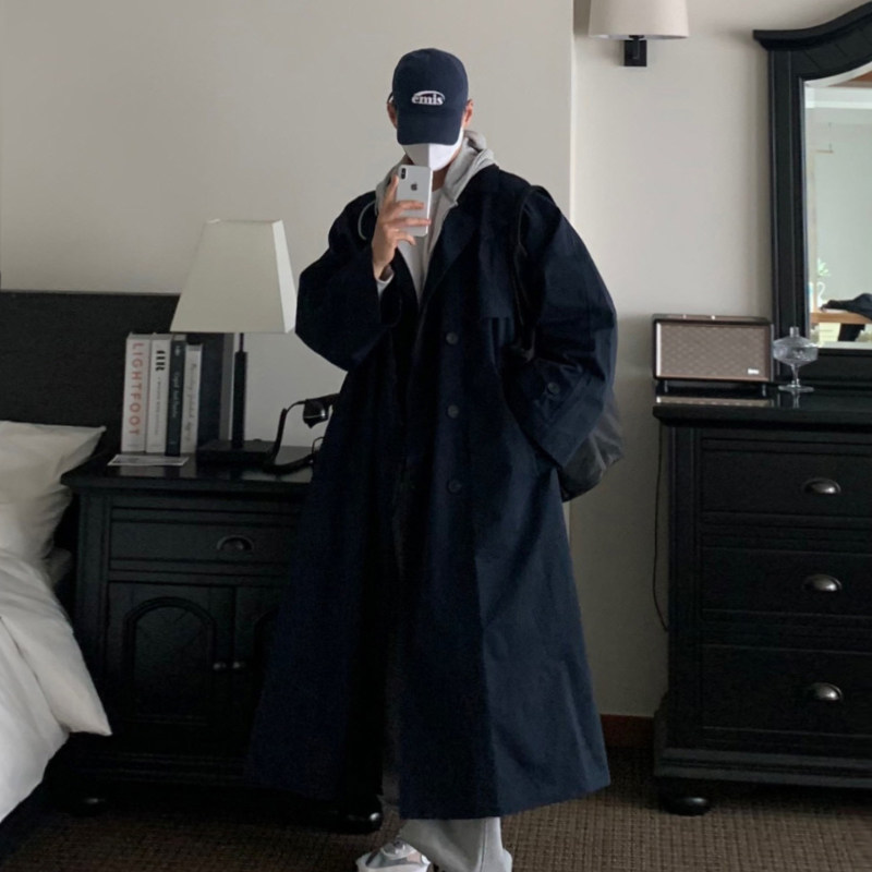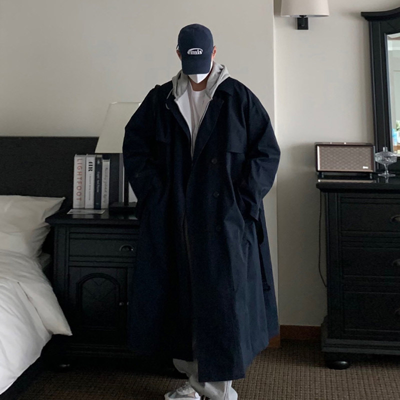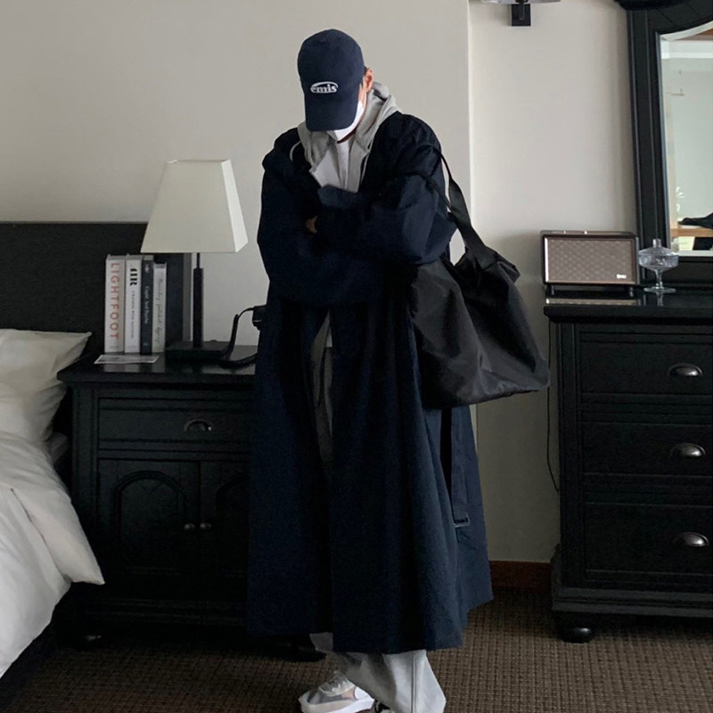 碧舍男士风衣外套春季中长款过膝痞帅大衣薄款休闲韩版宽松翻领潮