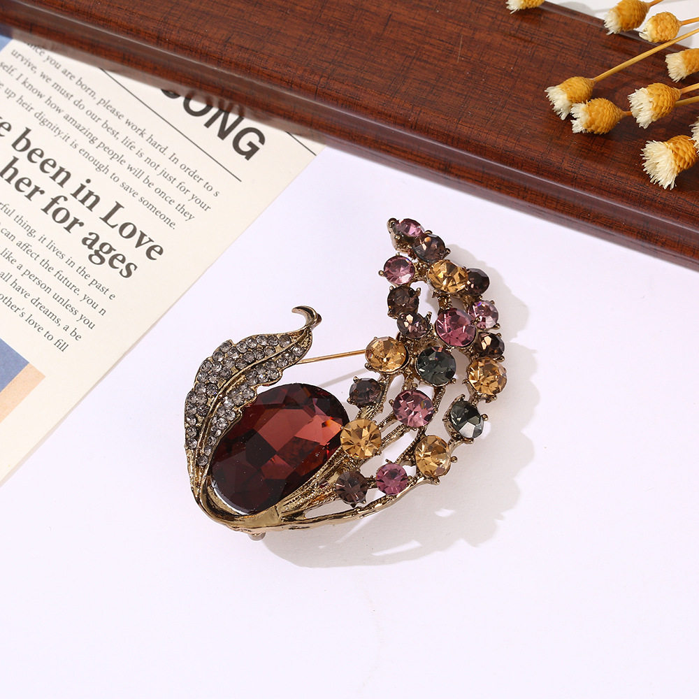 做旧复古风胸针大气复古奢华闪亮仿水晶胸针时尚女性大衣胸花别针