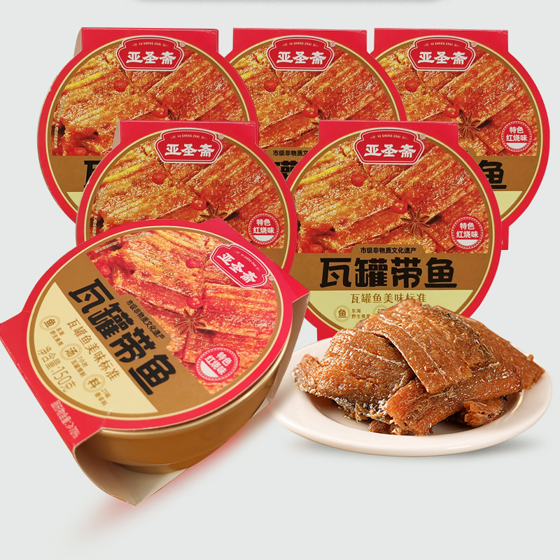 亚圣斋瓦罐带鱼罐头红烧味150g*6罐即食下饭菜熟食炒菜拌饭零食