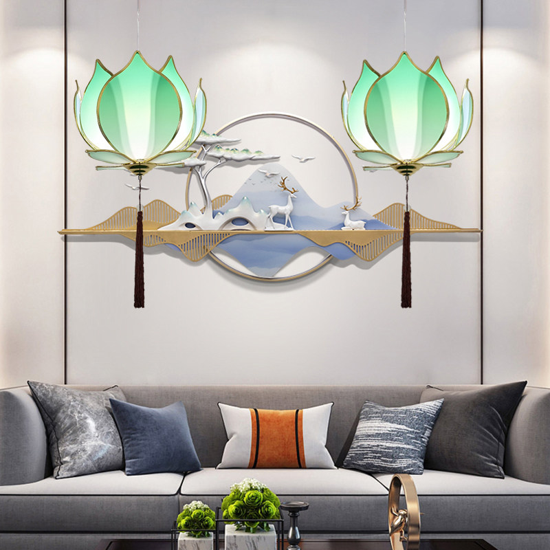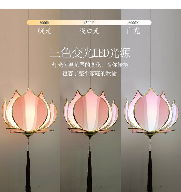 新中式布艺吊灯茶楼餐厅茶室火锅店过道灯禅意渐变色荷花莲花灯具