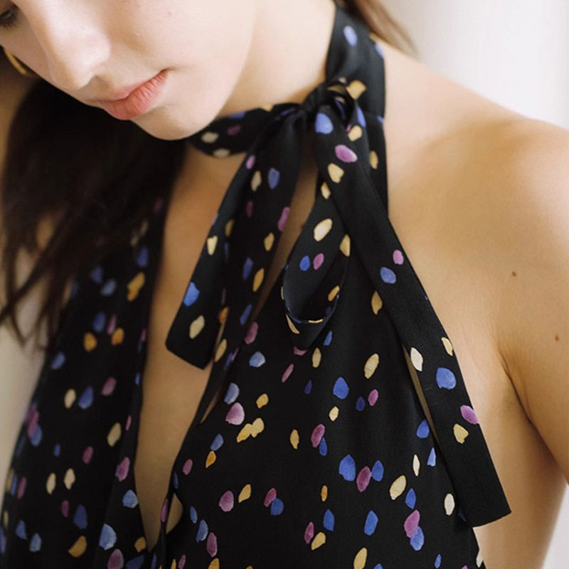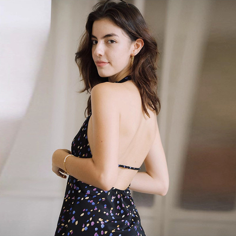 【现货】About Reformation繁星点点真丝吊带性感挂脖露背连衣裙