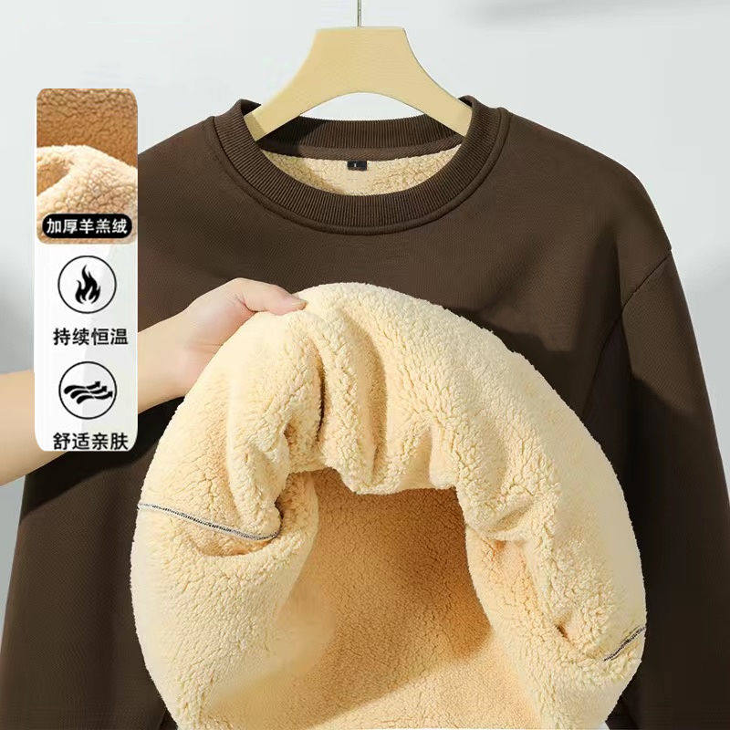 加绒加厚卫衣男冬厚保暖无帽上衣服2025冬款超厚大码男羊羔绒外套
