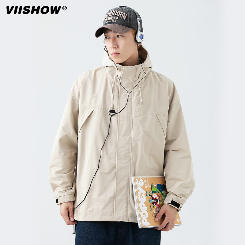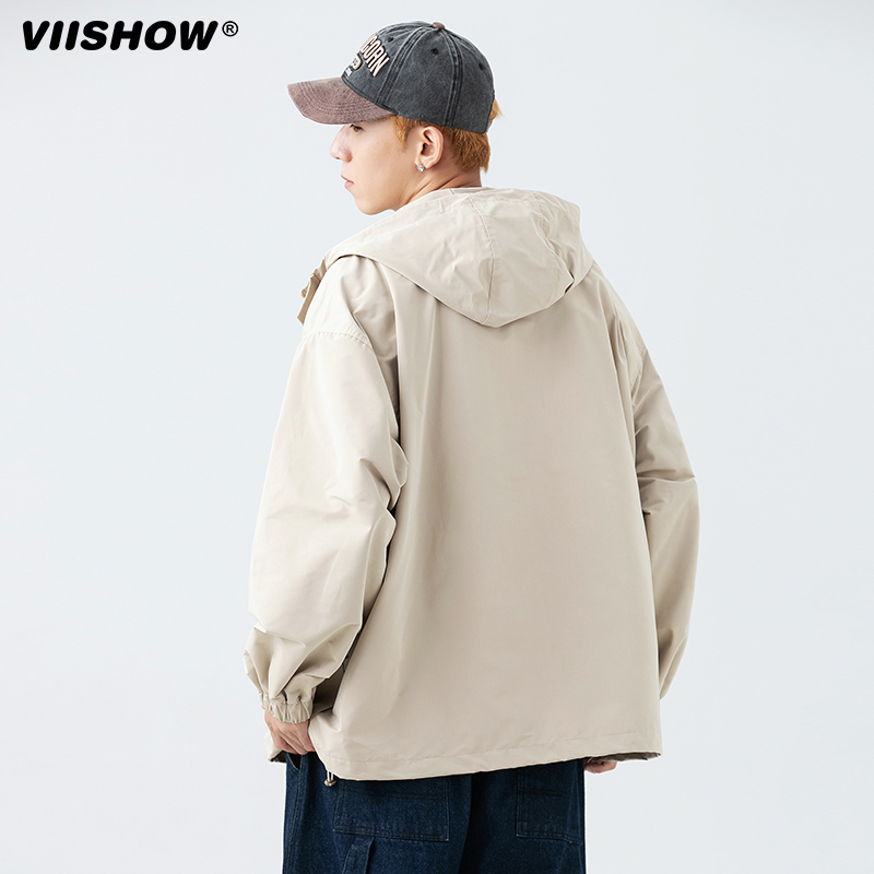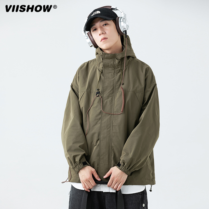 VIISHOW外套男春季日系宽松连帽上衣休闲防风冲锋夹克情侣工装夹