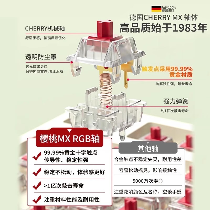 前行者cherry樱桃轴Z108无线机械键盘绿色有线87蓝牙游戏电竞专用