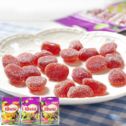 进口利宾纳果汁qq糖果葡萄黑加仑水蜜桃杂锦莓味VC软糖休闲小零食