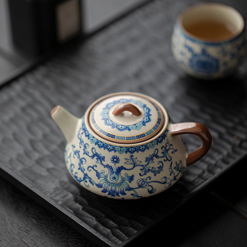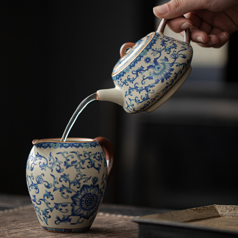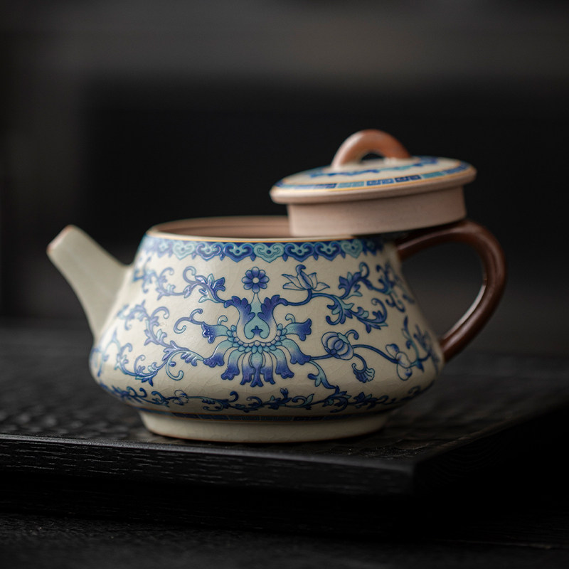 米黄汝窑青花西施壶茶壶茶杯单壶