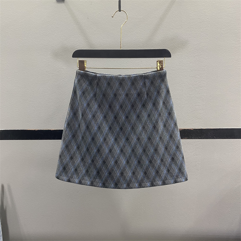 复古格纹毛呢半身裙女2025秋冬新款气质高腰显瘦辣妹A字包臀短裙