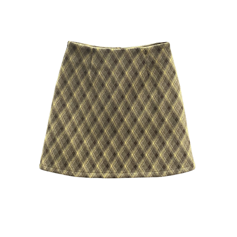 复古格纹毛呢半身裙女包臀短裙