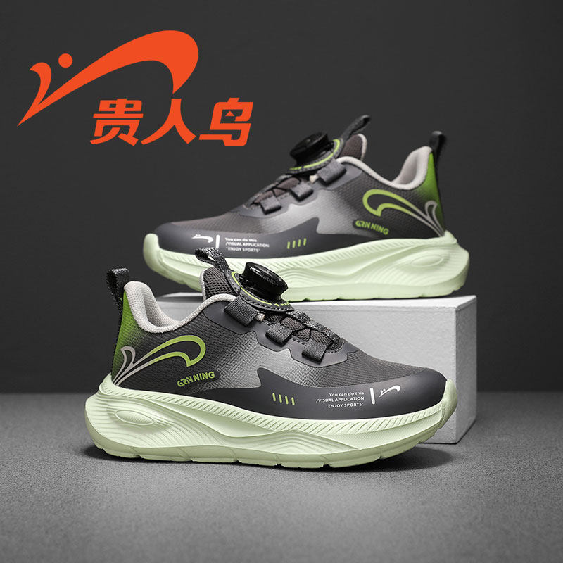 贵人鸟男童鞋革面运动鞋春季2026新款青少年时尚旋钮扣软底跑步鞋