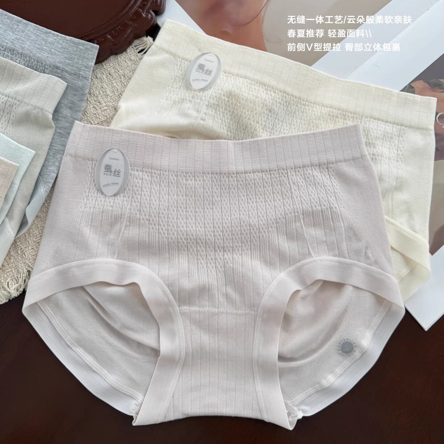 轻软无缝裸肤感蚕丝裆女士内裤50支莫代尔中腰轻收腹蜜桃臀三角裤