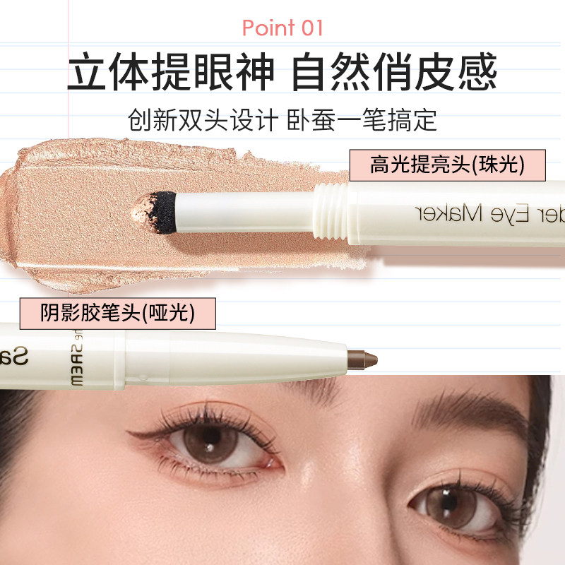 The Saem得鲜双头高光棒卧蚕笔珠光眼影笔提亮持久眼妆不晕染女
