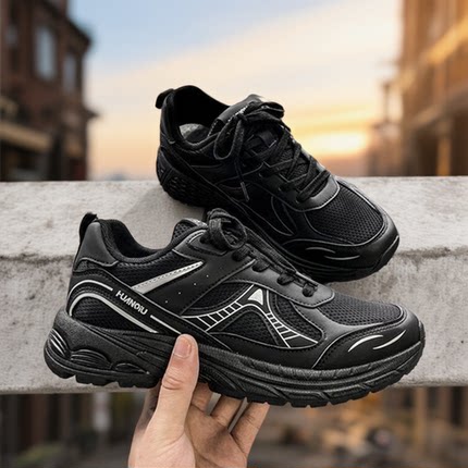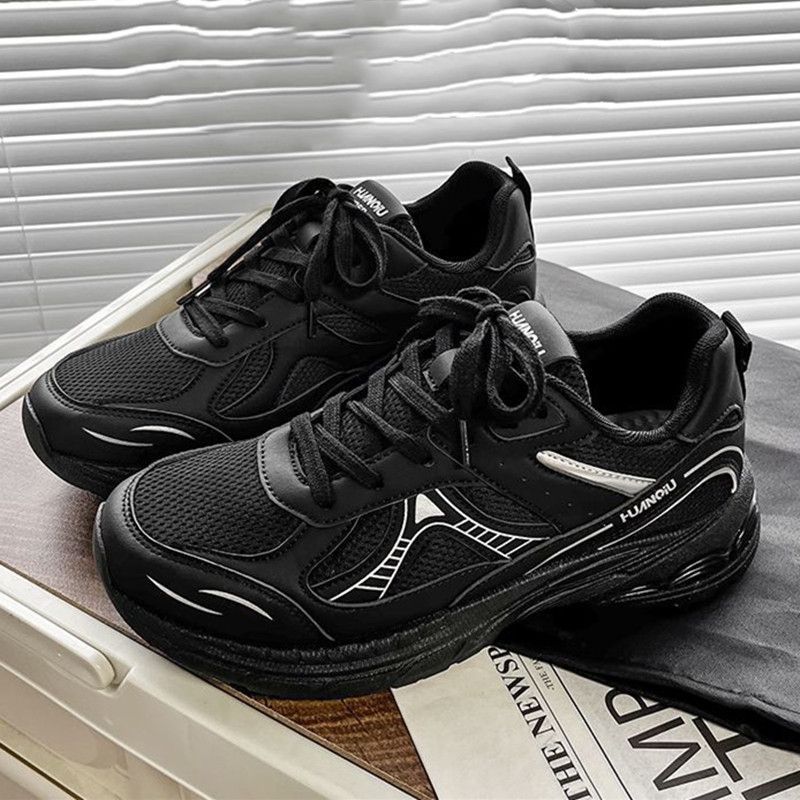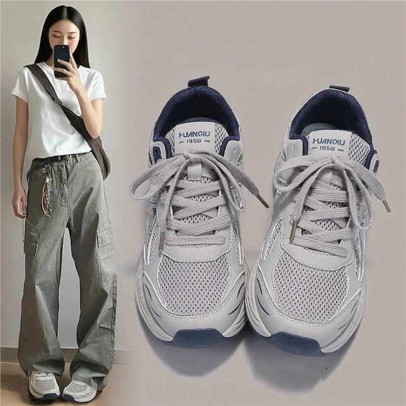 大码女鞋41到43老爹鞋黑色春秋新款脚宽胖透气运动休闲鞋子显脚小