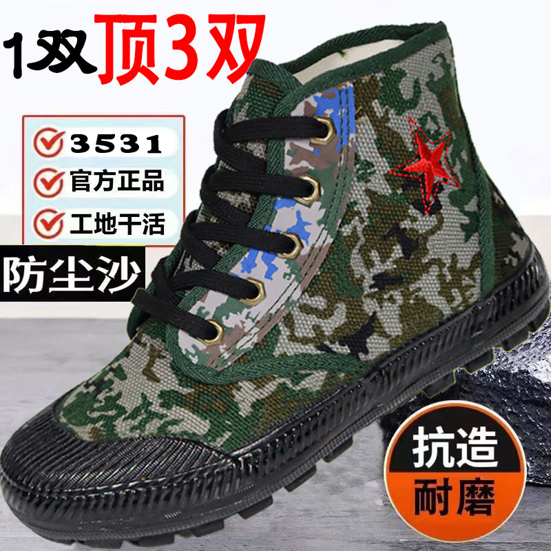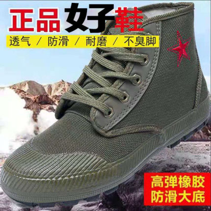 解放鞋男作训鞋工地鞋耐磨透气胶鞋帆布高帮劳保胶鞋女劳动防滑鞋