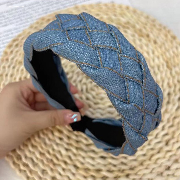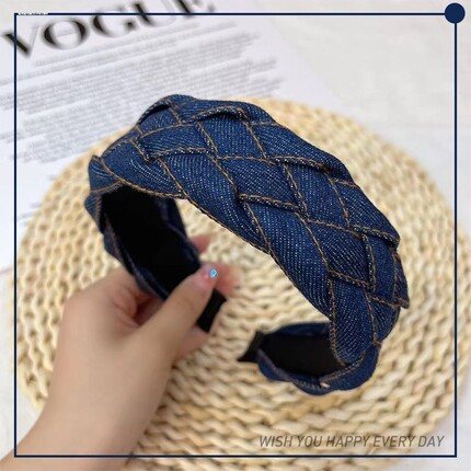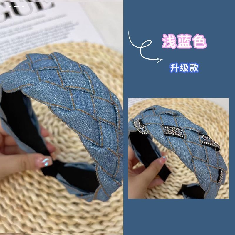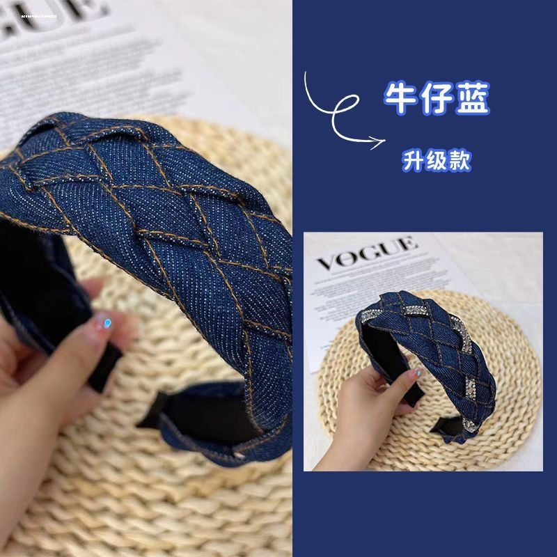 蓝色牛仔发箍女款头箍发卡头饰宽边麻花编织布艺韩系时尚小众新款