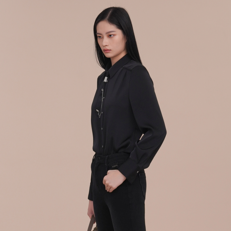 XG雪歌简约法式通勤优雅缎感衬衫女2025春装新款上衣XK121019A190