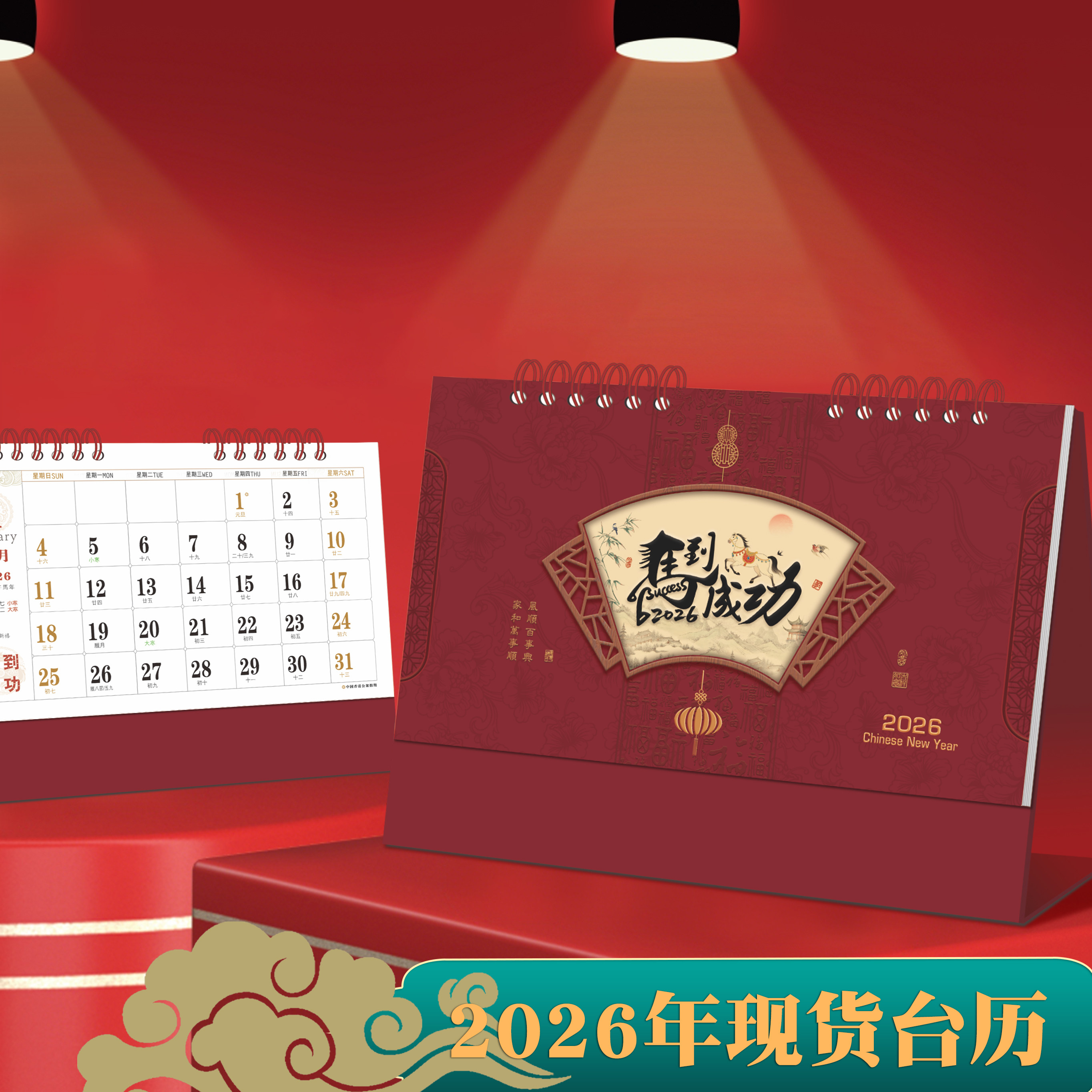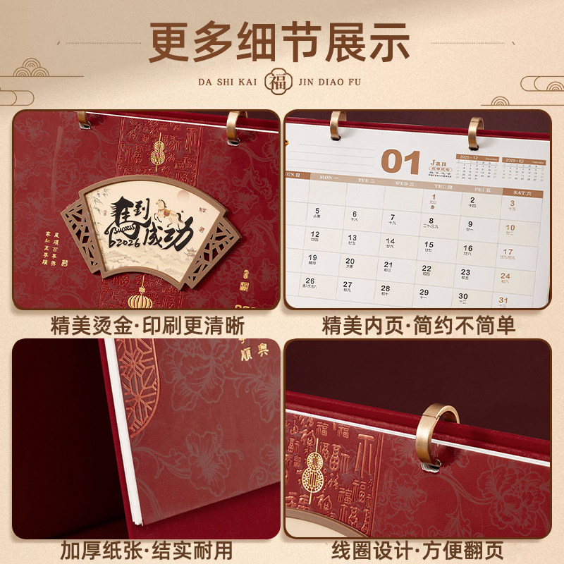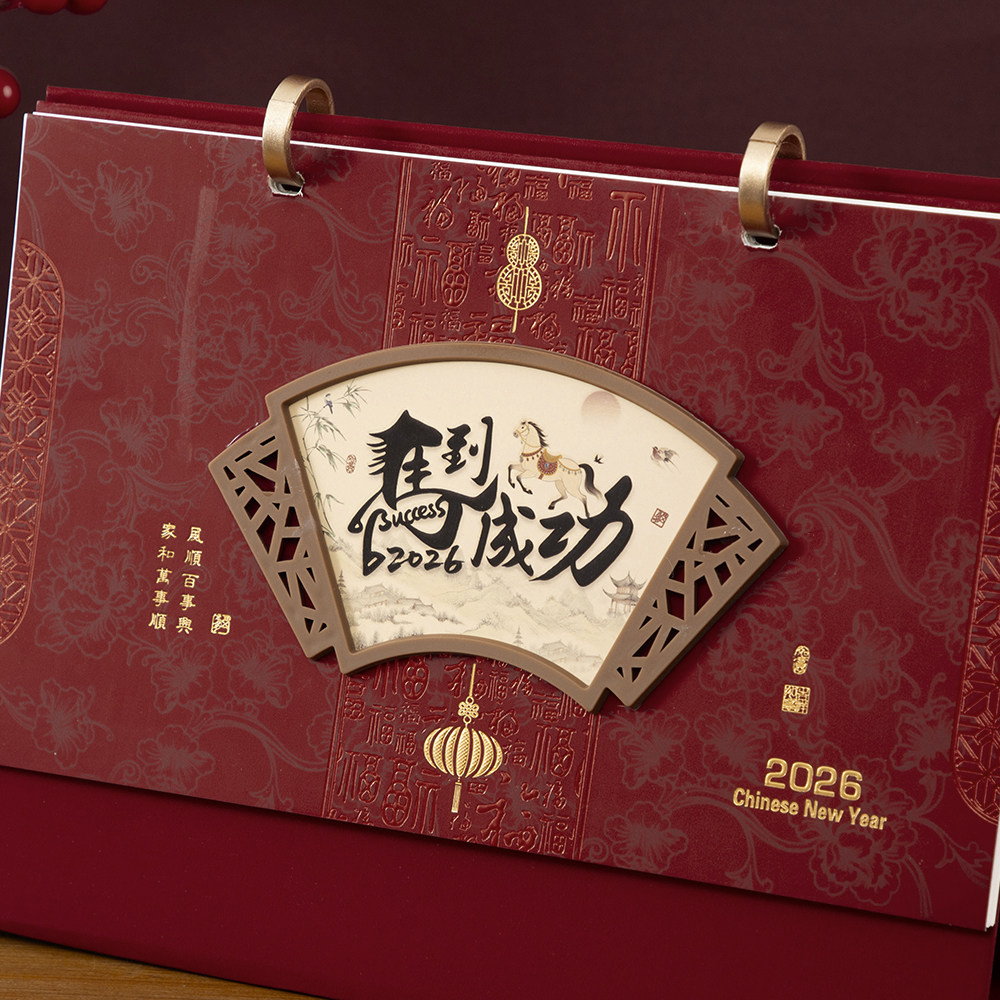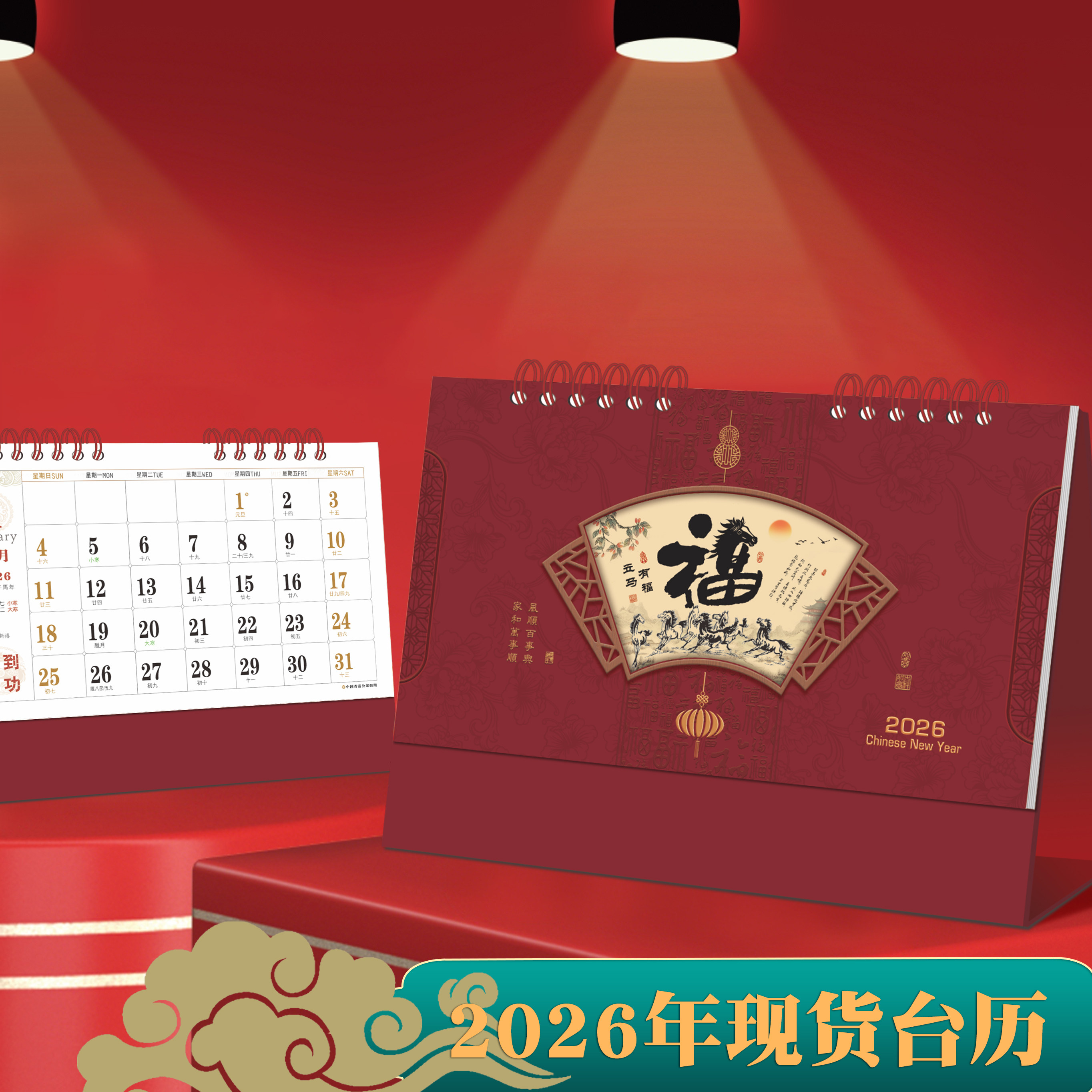台历2026年新款日历中国风桌面摆件办公室马年创意翻页工作打卡计划本礼盒企业广告红色喜庆礼品月历定制印刷