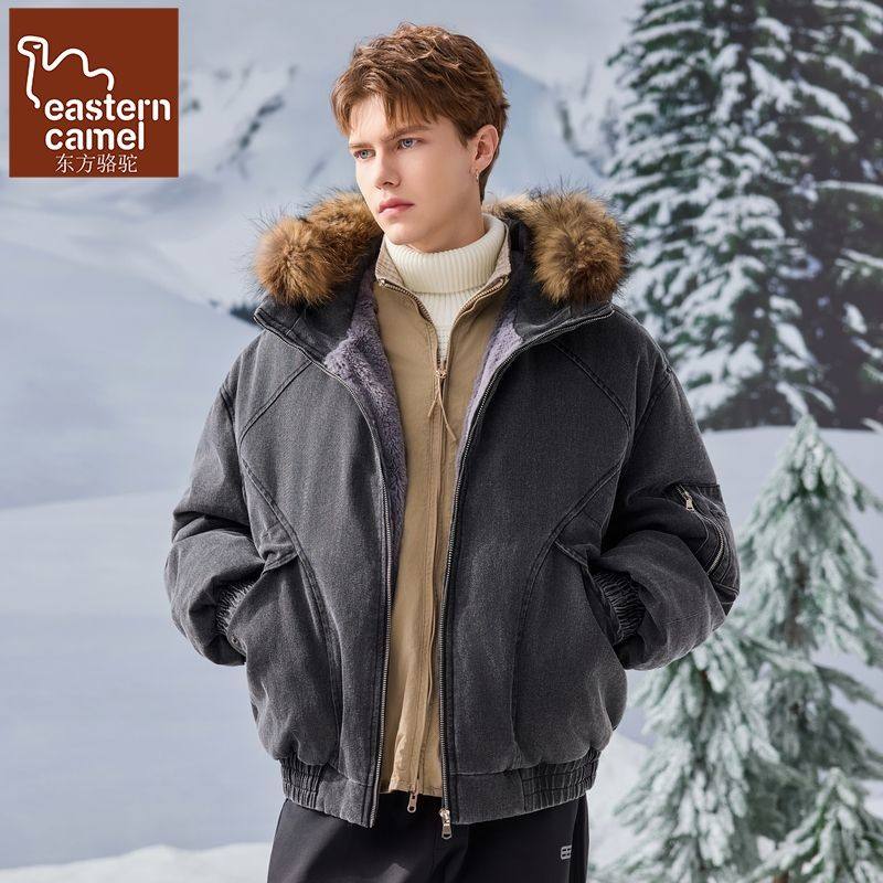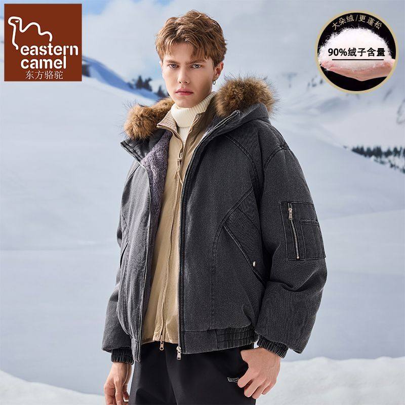 可拆卸毛领连帽羽绒服男短款宽松潮流冬季加绒加厚保暖白鸭绒外套