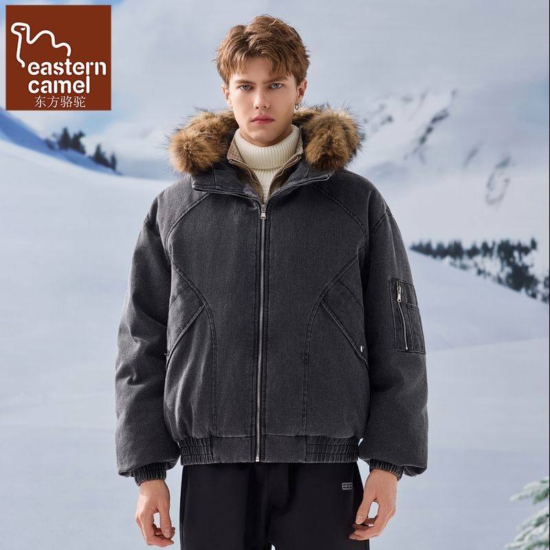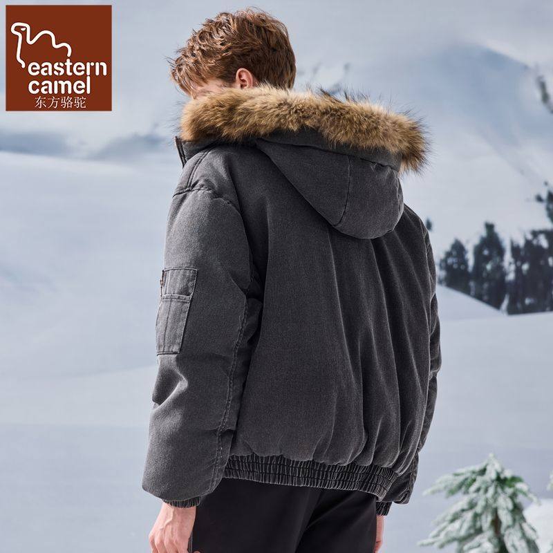 可拆卸毛领连帽羽绒服男短