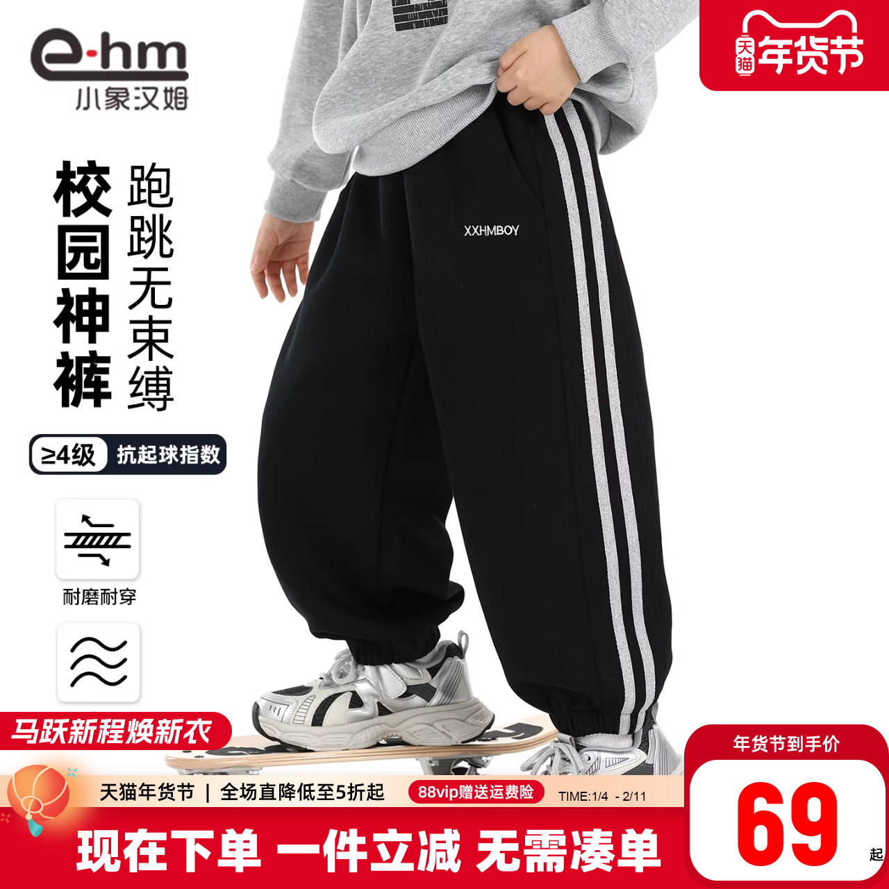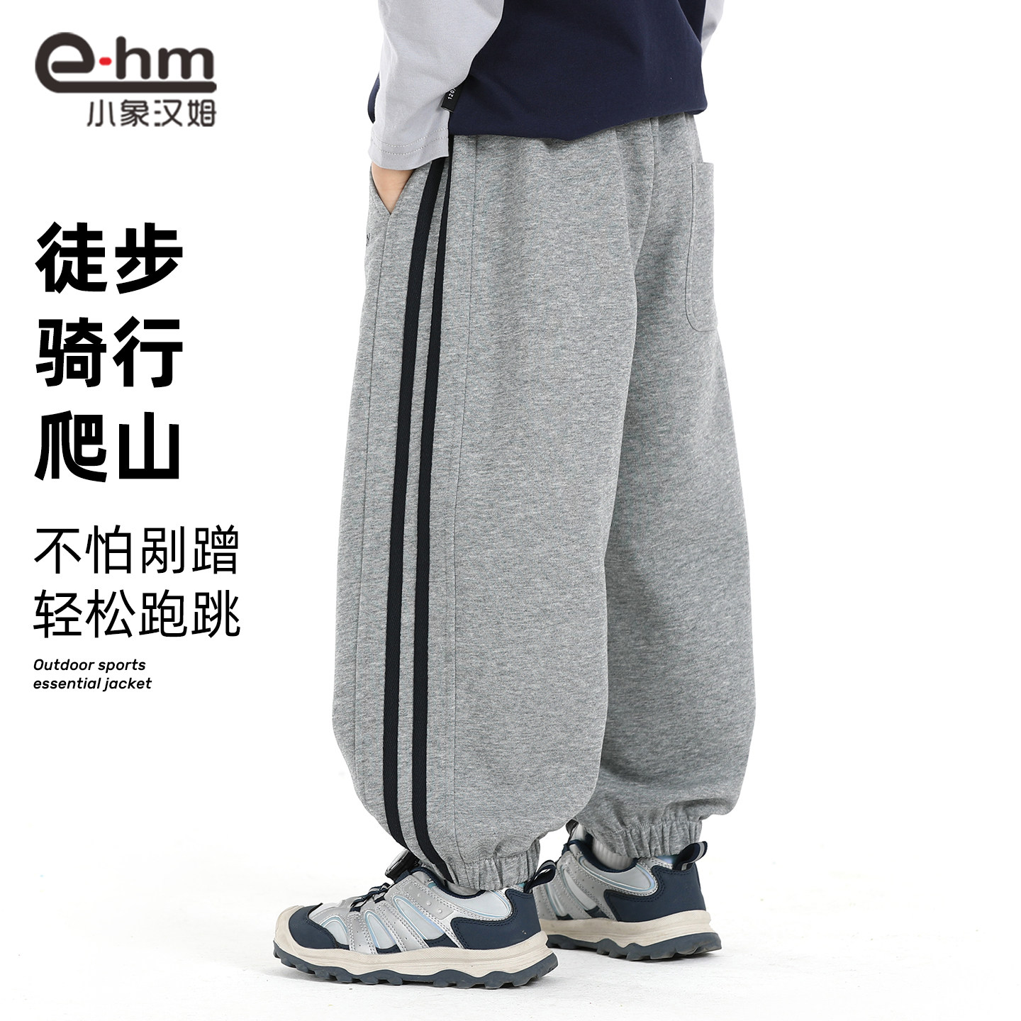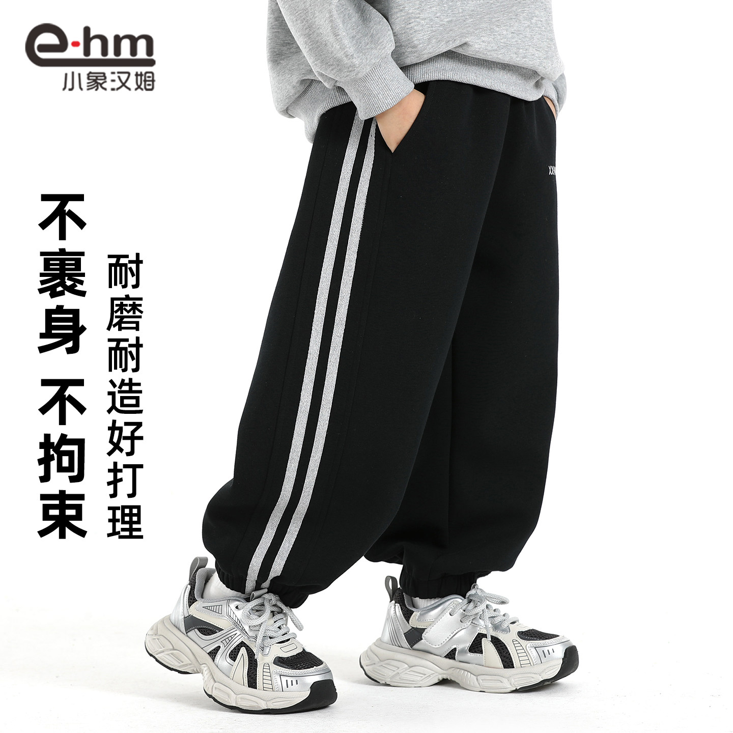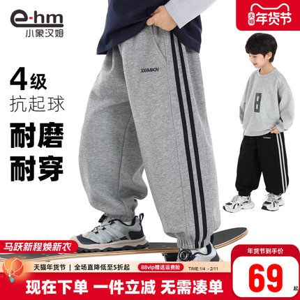 小象汉姆童装男童运动裤春春款2026春装新款儿童校服裤宽松束脚裤