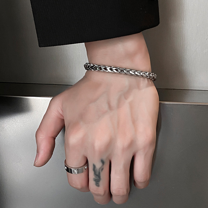 男士手链简单大方轻奢高级感钛钢不掉色百搭银色男生编织手环手饰