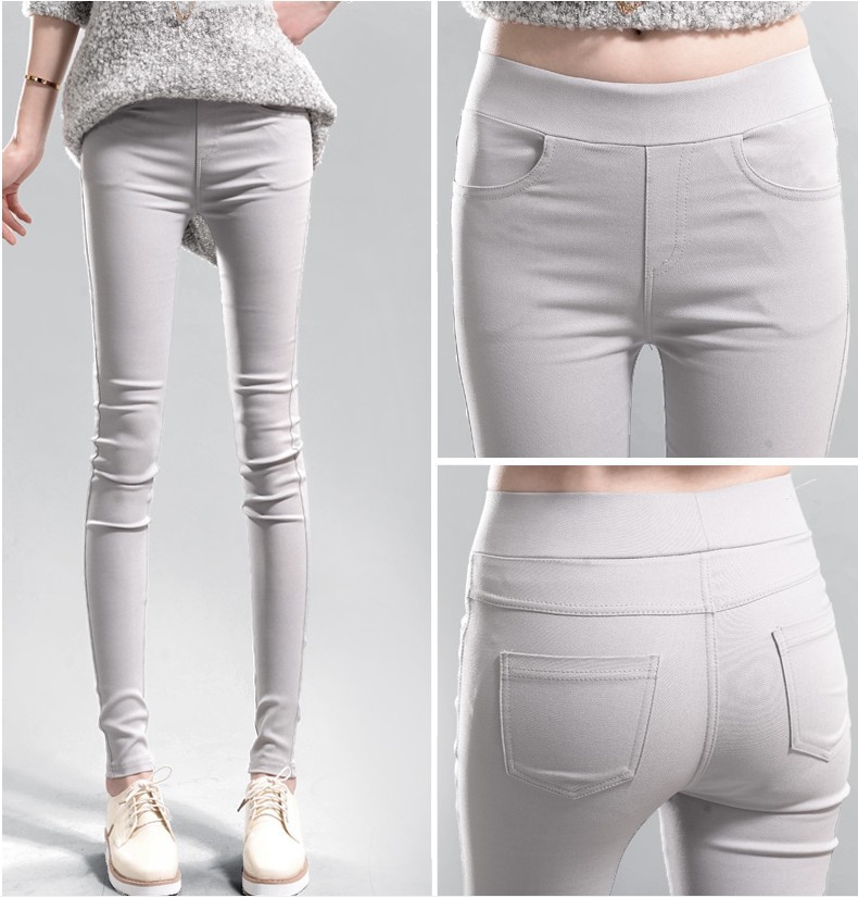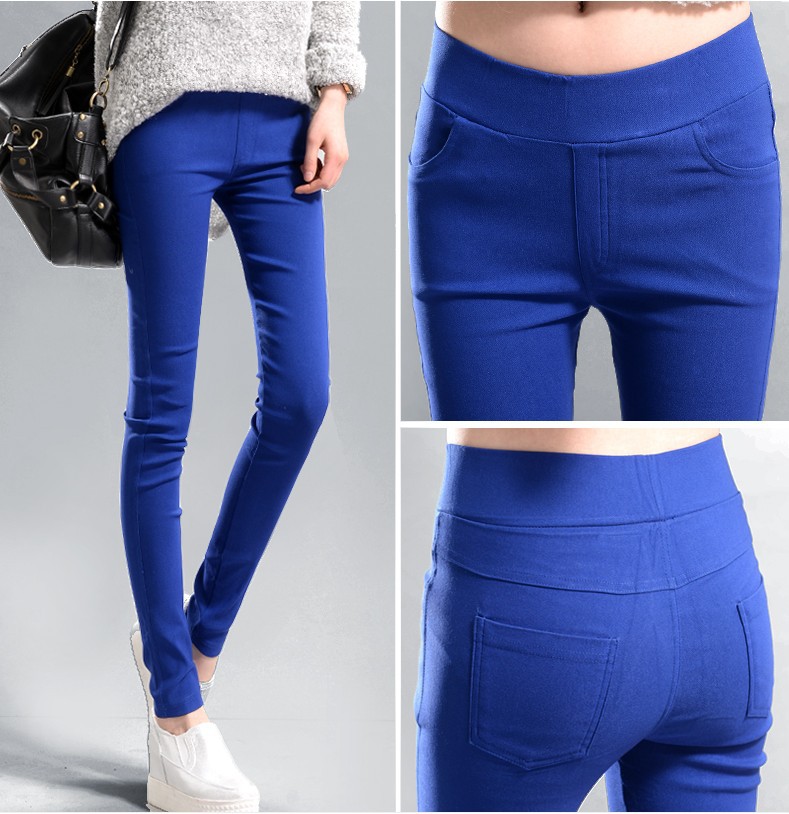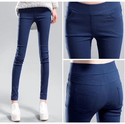 春秋糖果色打底裤女外穿弹力松紧腰彩色铅笔裤修身高腰裤长裤提臀