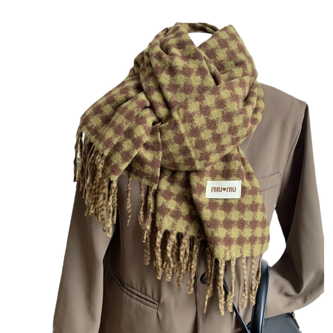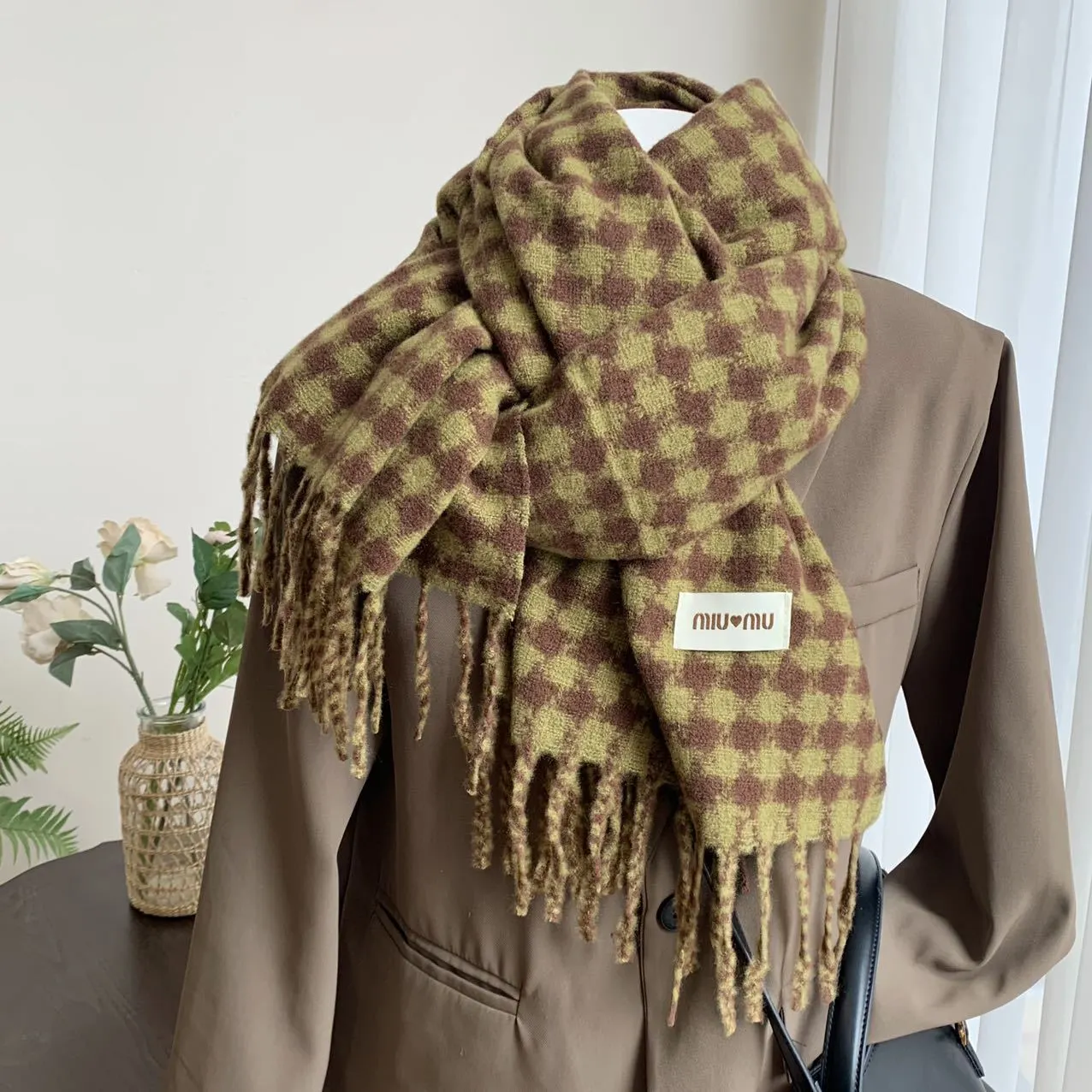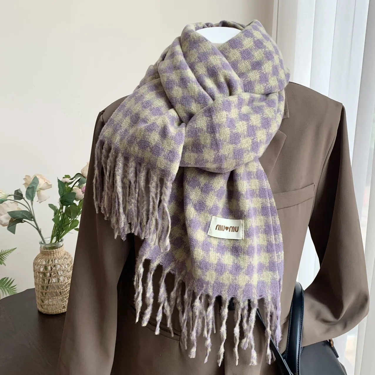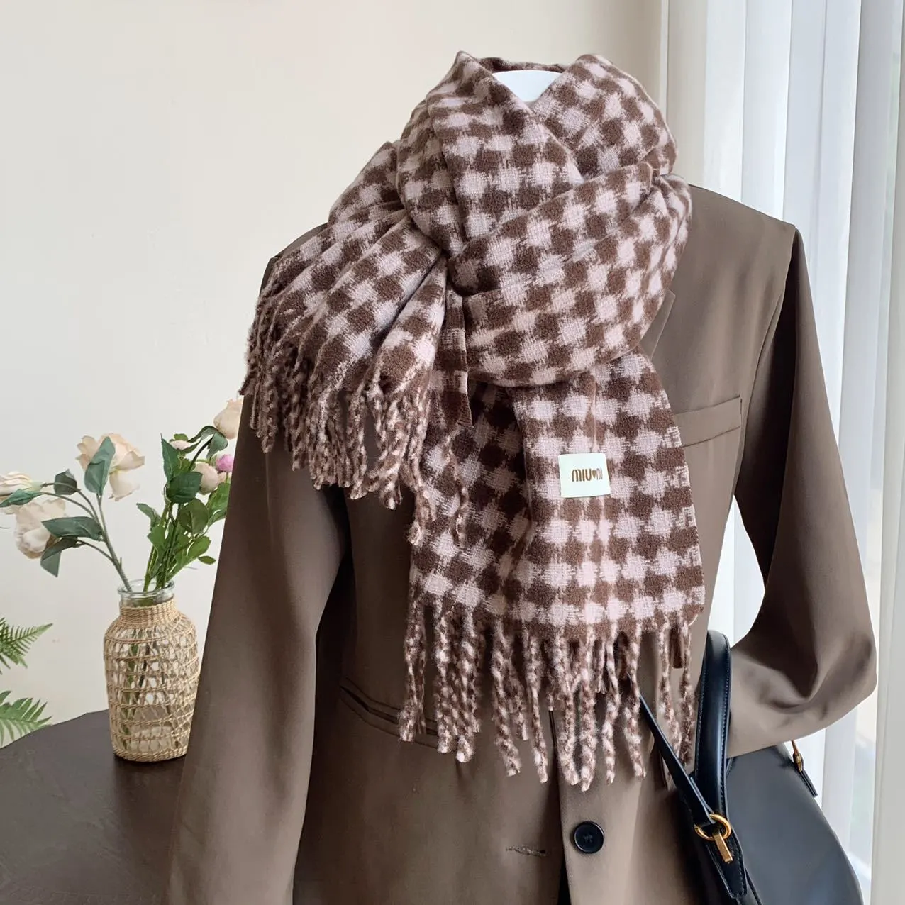 千鸟格围巾女秋冬季2021新款格子仿羊绒保暖流苏披肩加厚防寒围脖