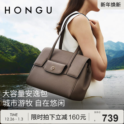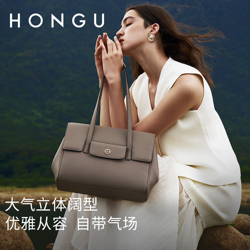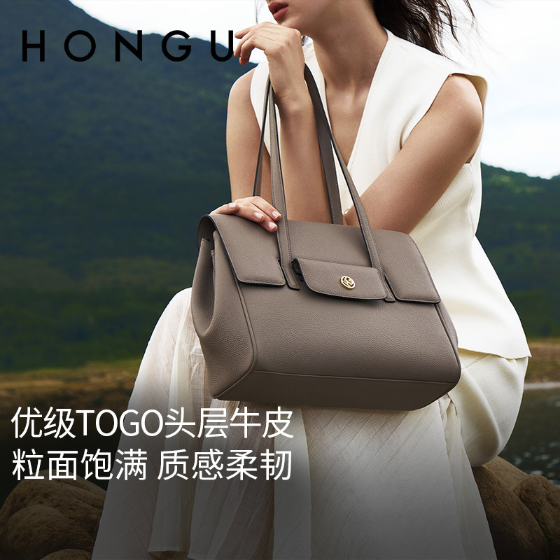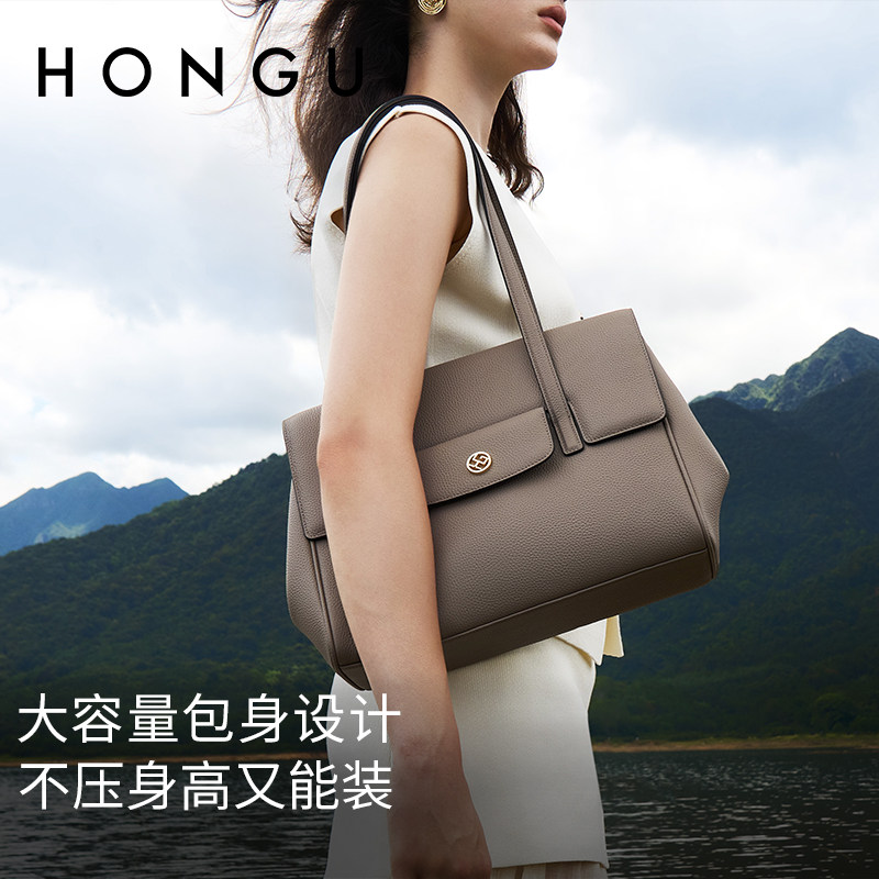 红谷包包女式新款真皮单肩手提包通勤上班大容量托特包牛皮女士包