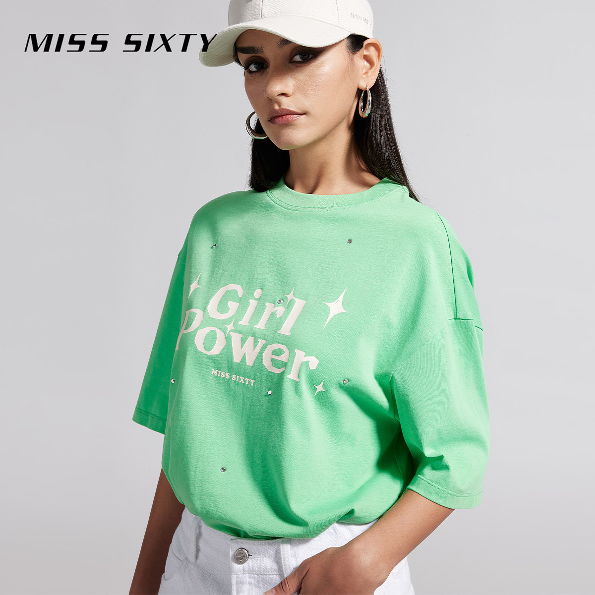 Miss Sixty短袖T恤上衣女宽松落肩印花简约时尚撞色字母高街休闲